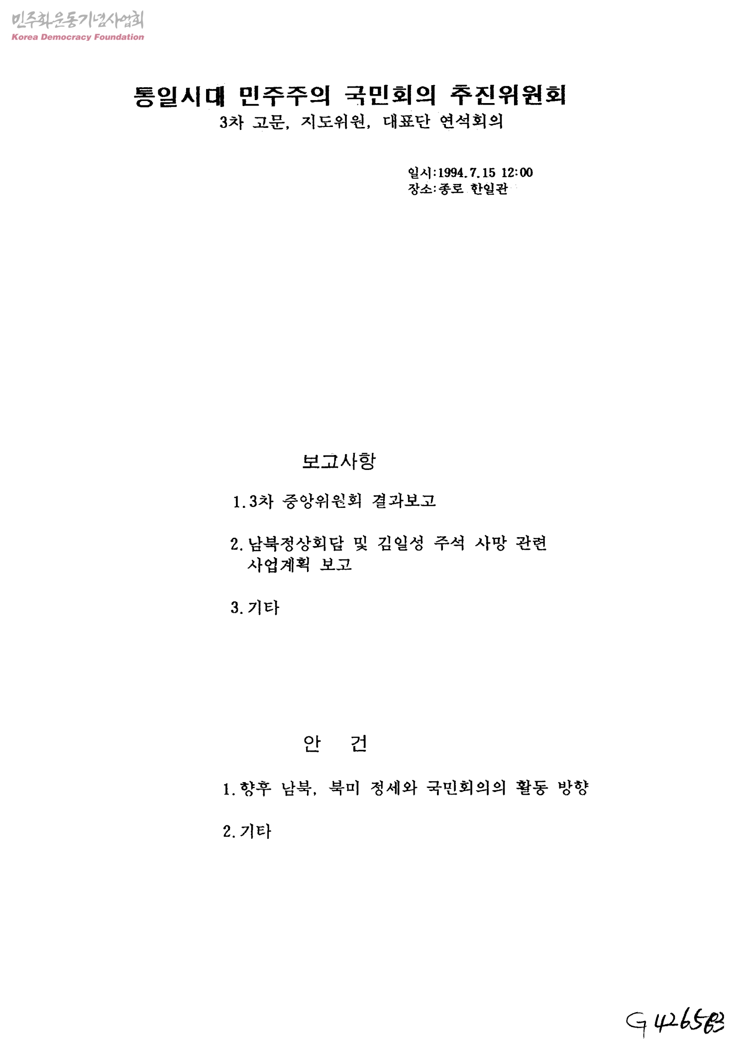- 안건 -향후 남북, 북미 정세와 국민회의의 활동 방향