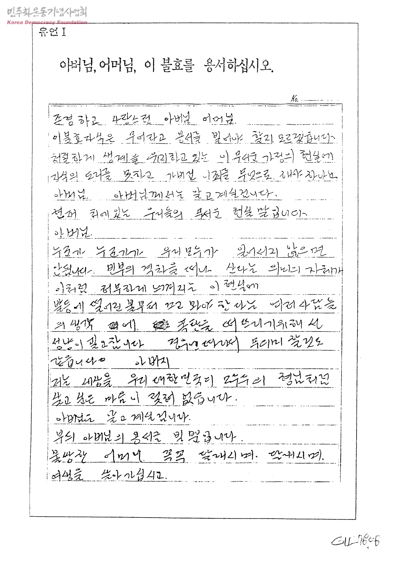 유언Ⅰ-아버님, 어머님, 이 불효를 용서하십시오.