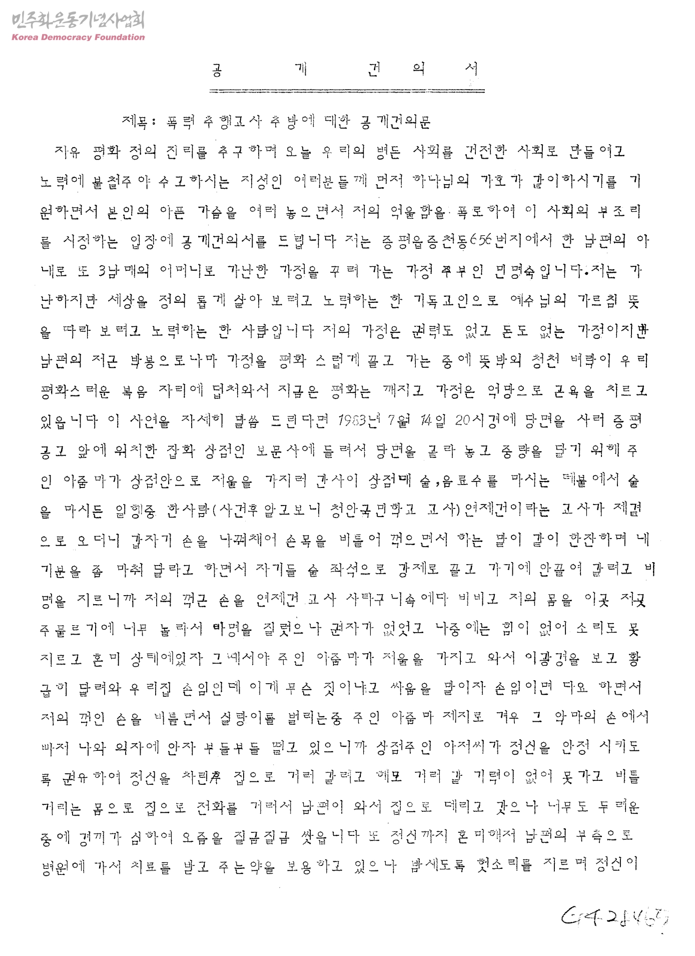 [교사들의 강제추행 및 폭력사건 관련자료]공개건의서-폭력추행교사 추방에 대한 공개건의문