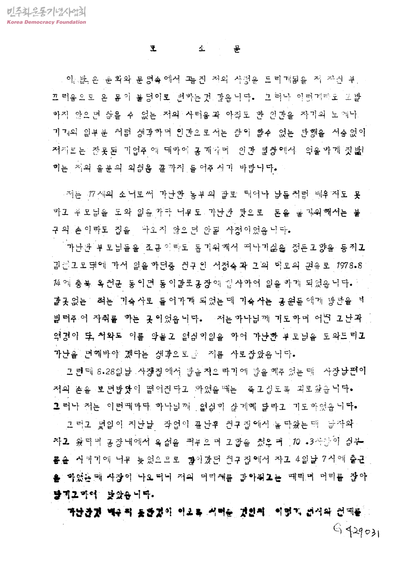 [갈포공장 김연화 사건자료]호소문[갈포공장 사장 이군자의 인권유린]