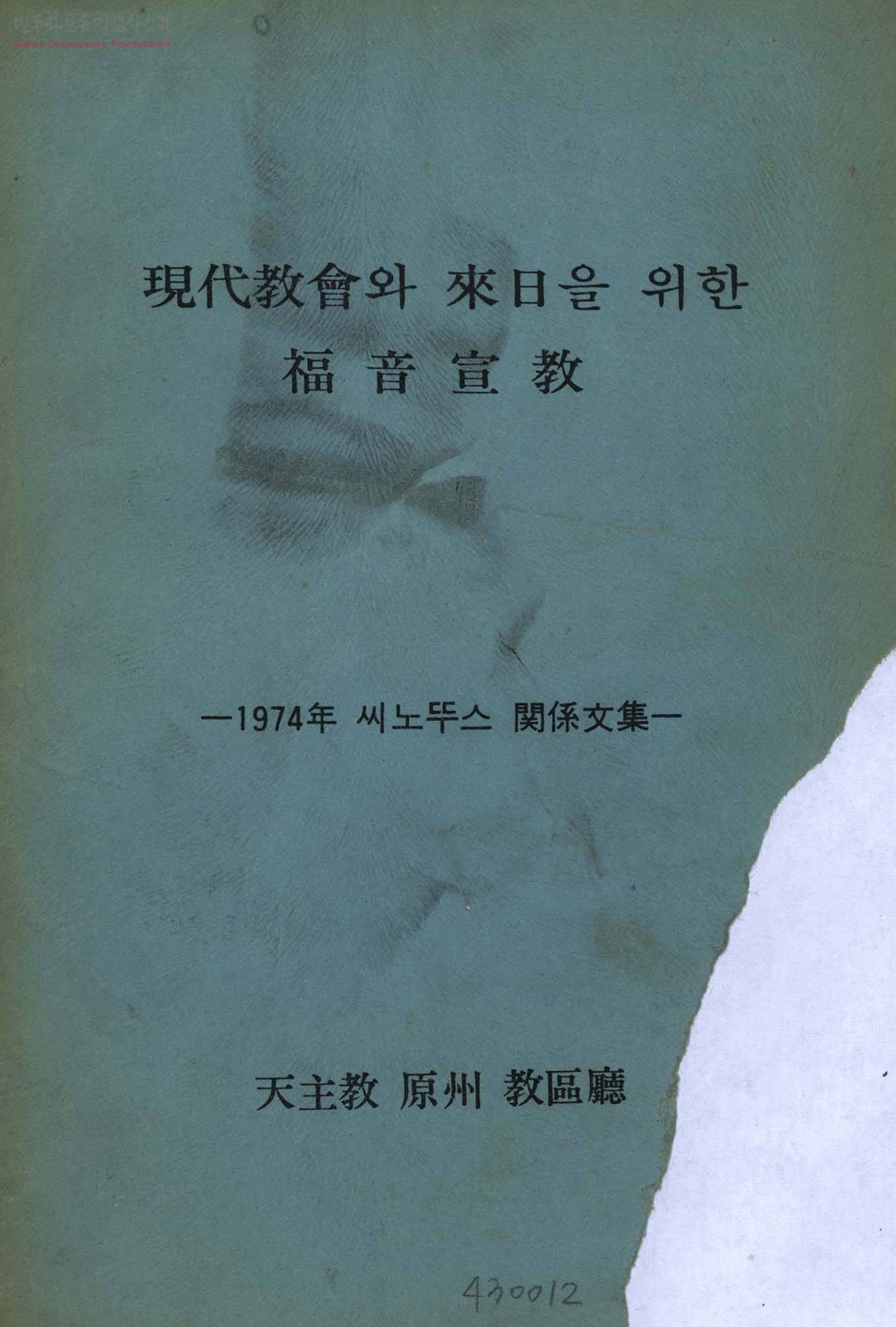 현대교회와 내일을 위한 복음선교- 1974년 씨노뚜스 관계문집