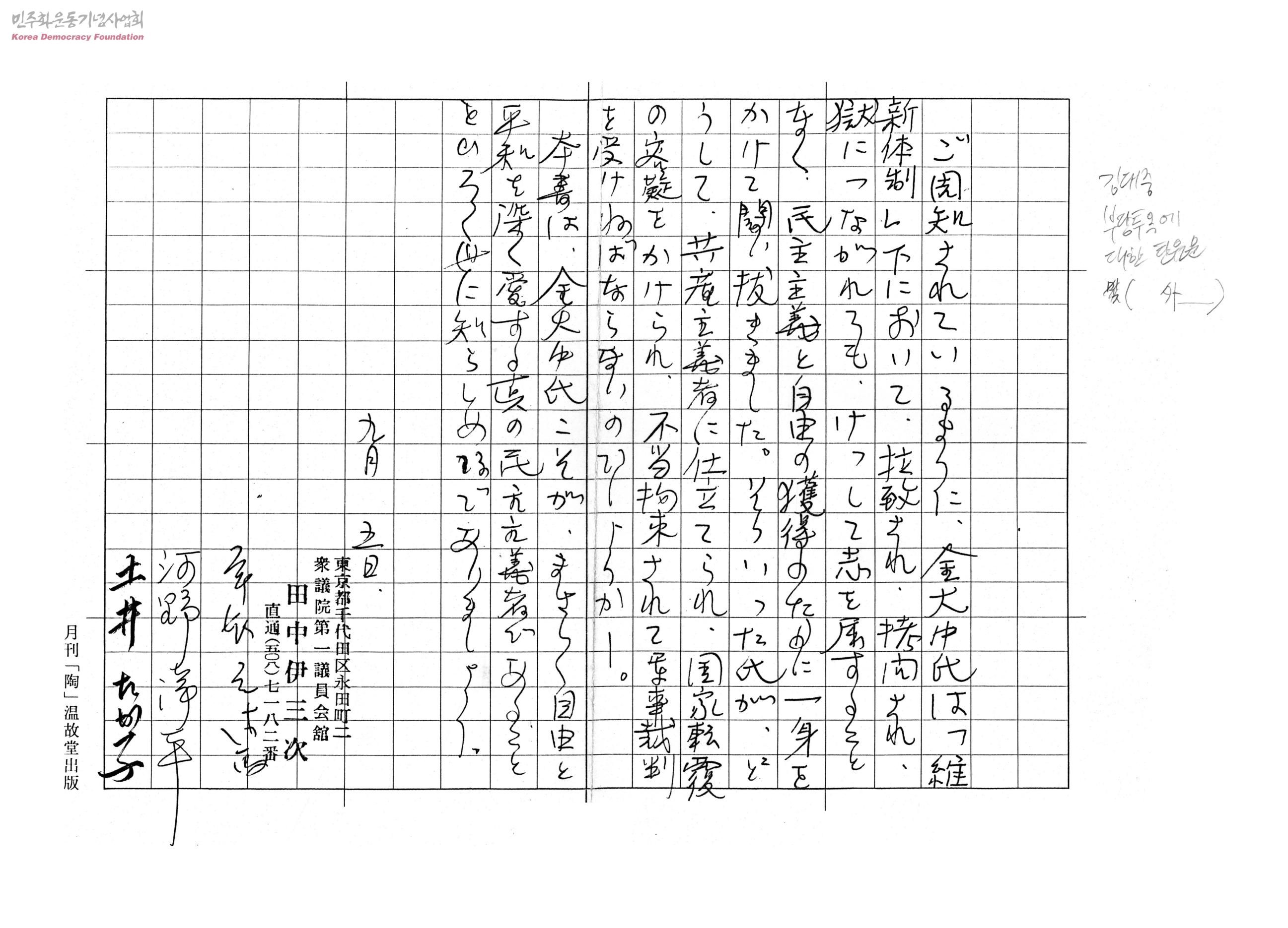 [김대중 부당투옥에 대한 탄원문]
