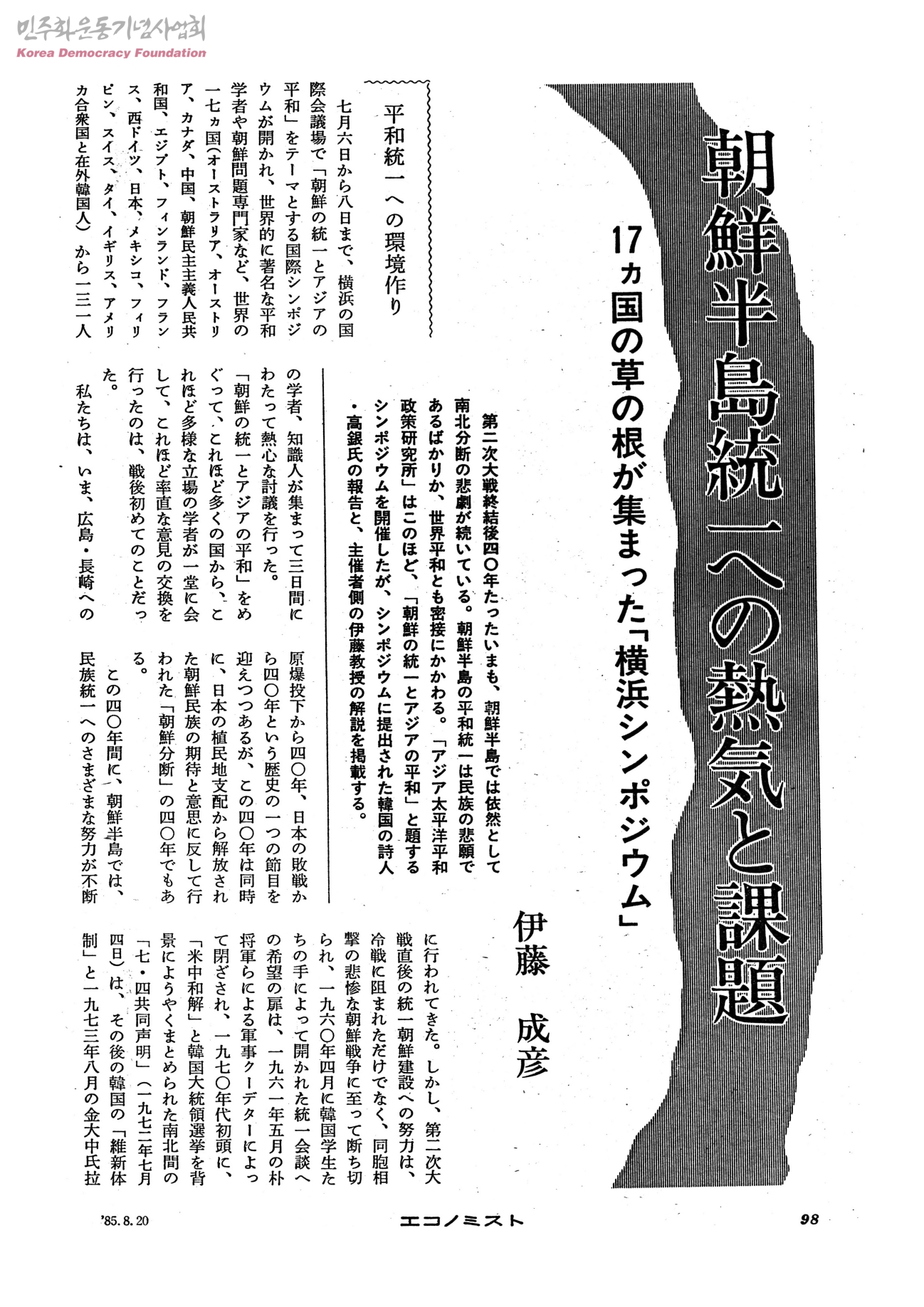 朝鮮半島統一への熱氣と課題