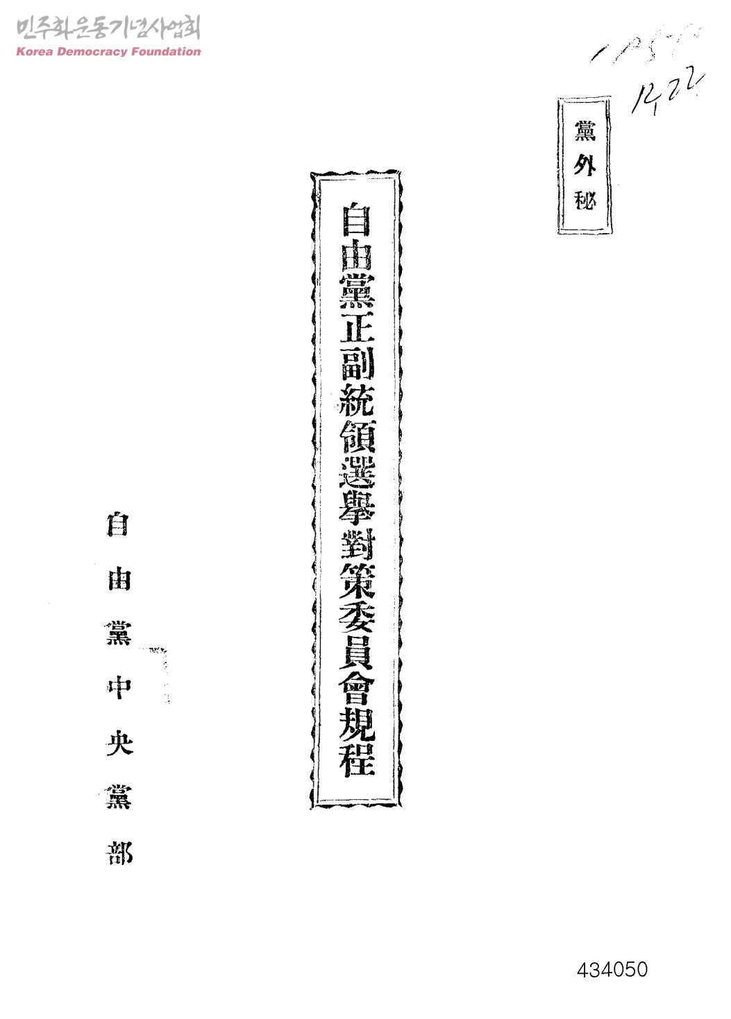自由黨正副統領選擧對策委員會規程