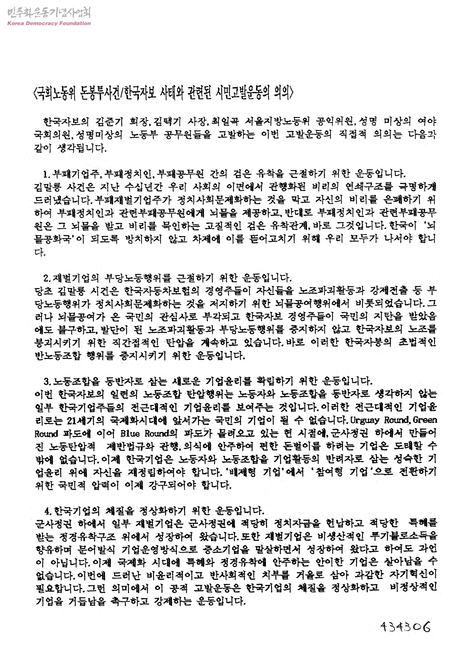 <국회노동위 돈봉투사건/한국자보 사태와 관련된 시민고발운동의 의의>