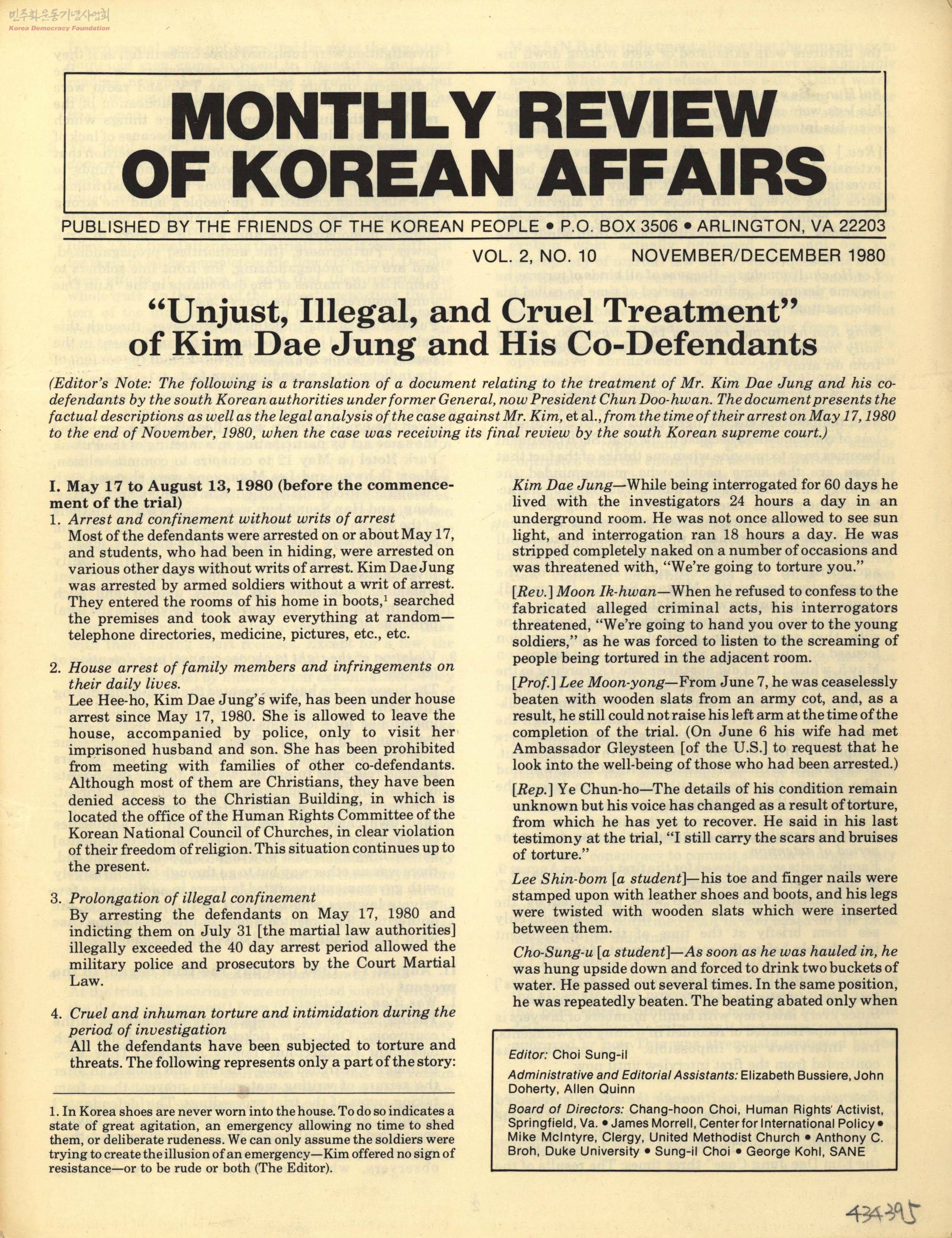 MONTHLY REVIEW OF KOREAN AFFAIRS VOL. 2, NO.10