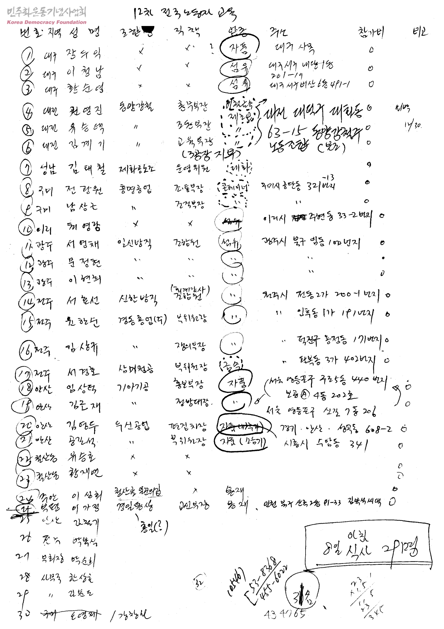 [12차 전국노동자교육 참가자 명단]