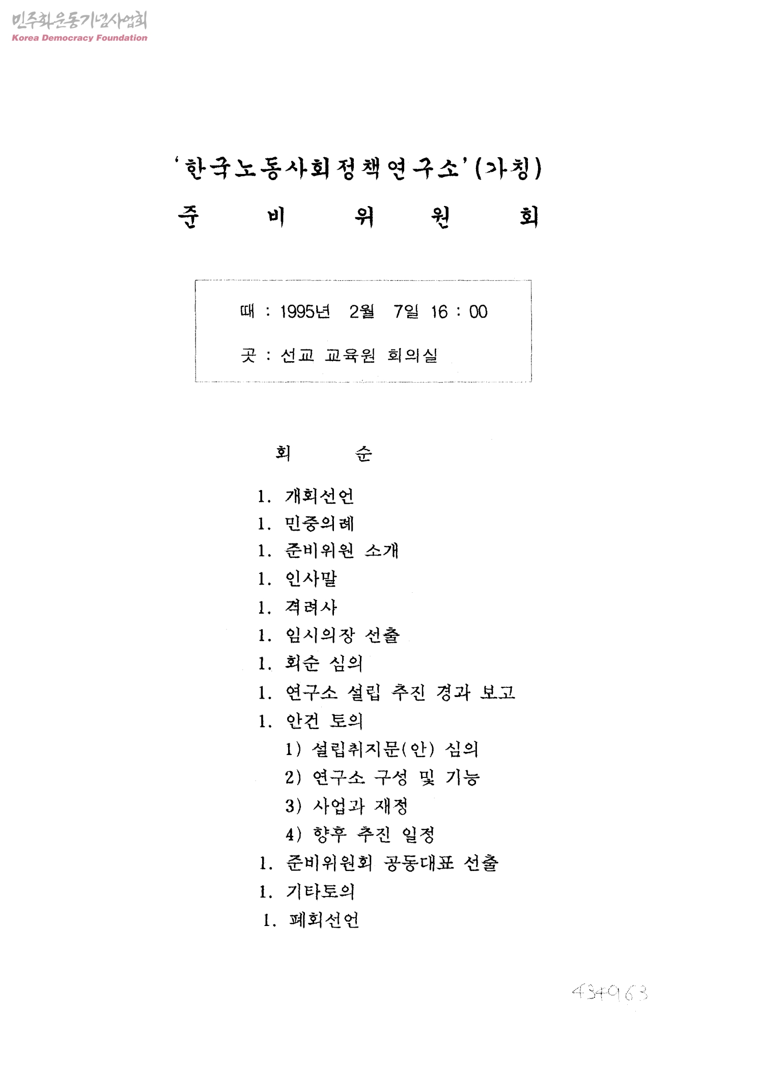 '한국노동사회정책연구소'(가칭) 준비위원회[설립계획안]