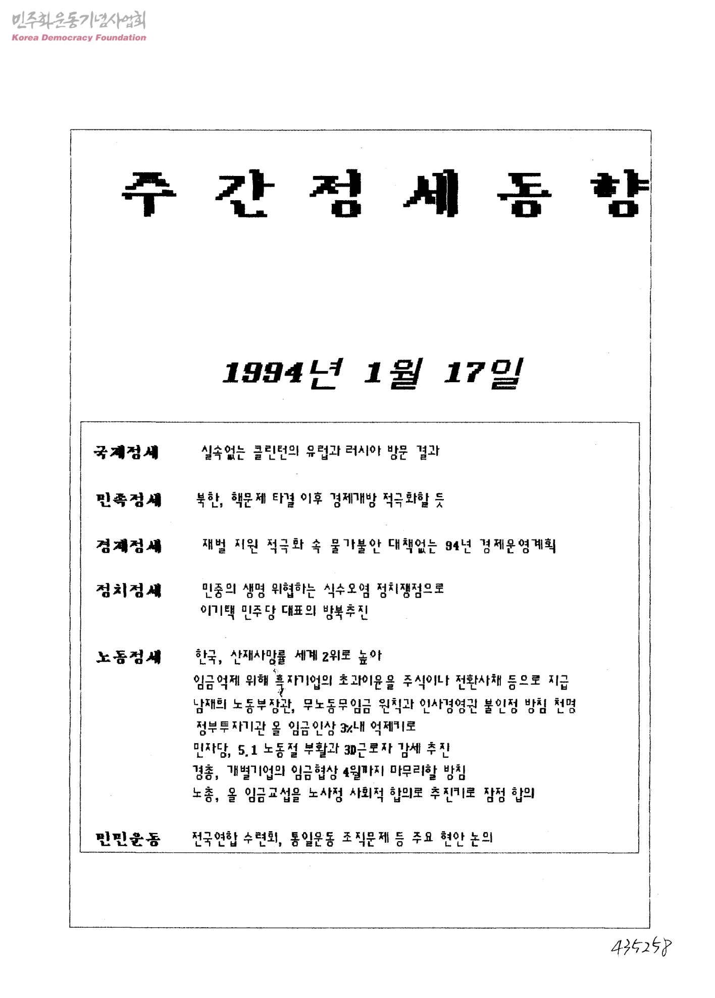 - 국제, 민족, 경제, 정치, 노동정세, 민민운동동향