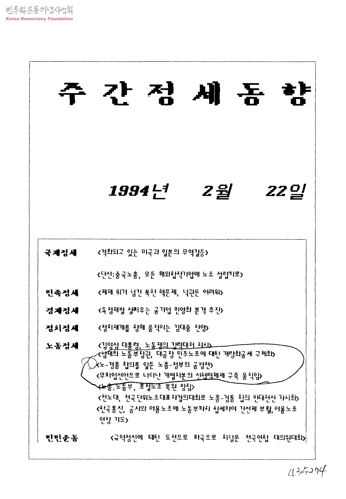 - 국제, 민족, 경제, 정치, 노동정세, 민민운동동향
