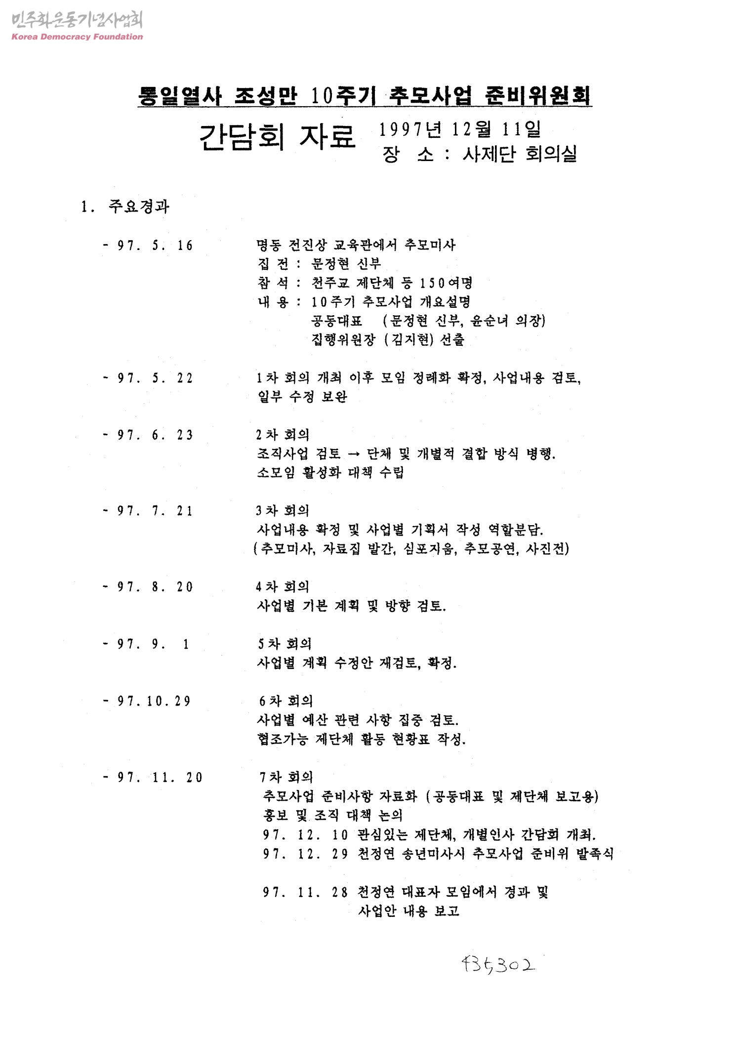 통일열사 조성만 10주기 추모사업 준비위원회 간담회 자료