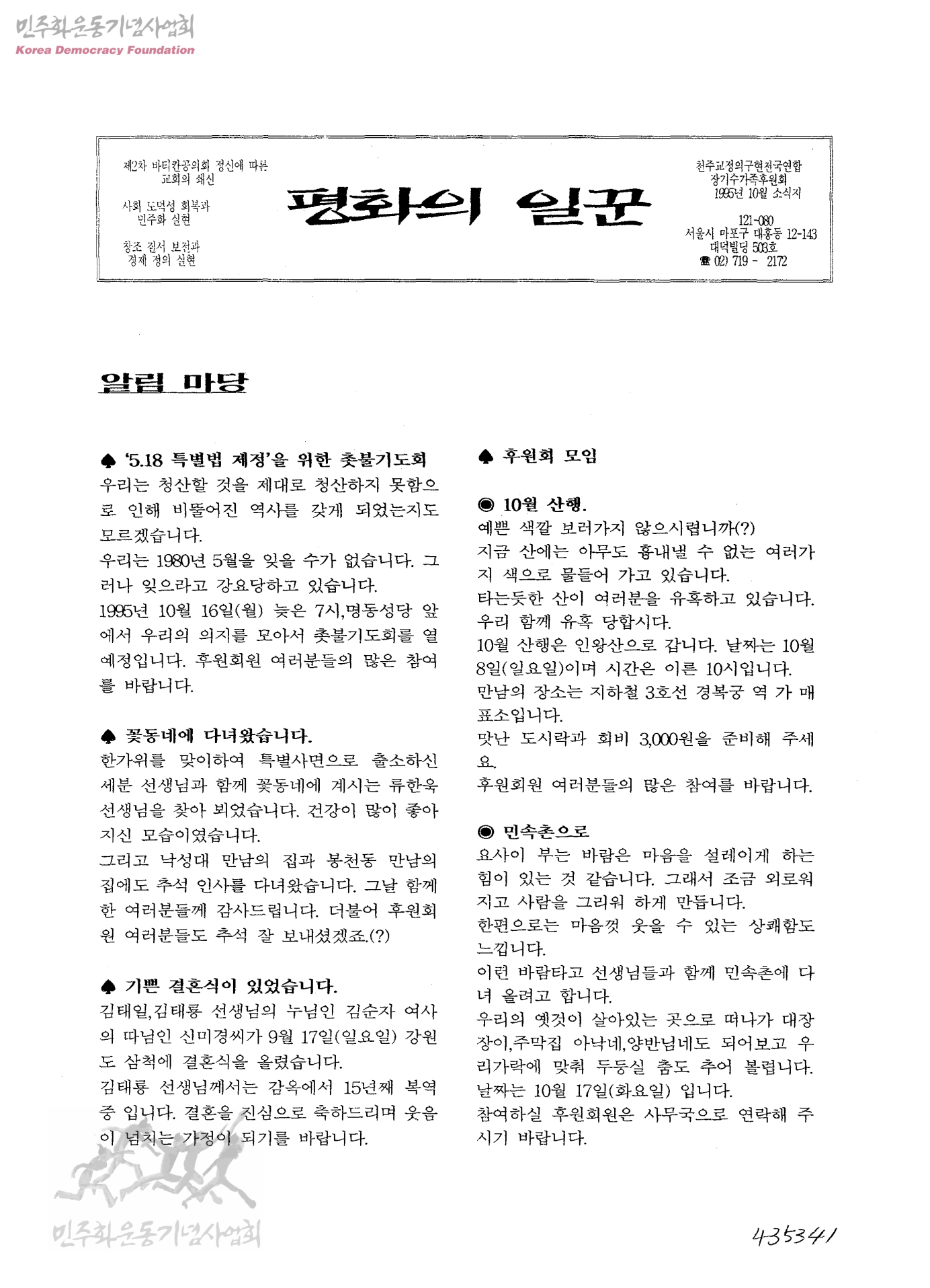 평화의 일꾼 제 10월 소식지