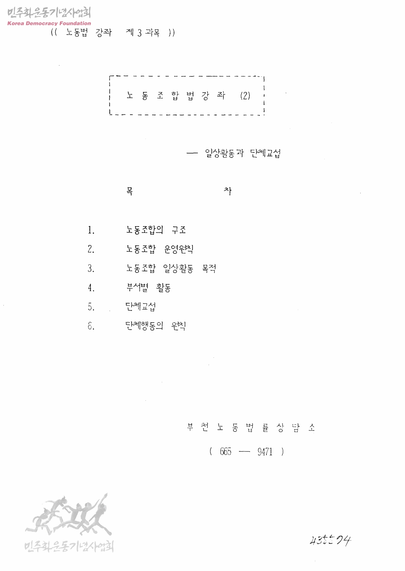(( 노동법 강좌 제3과목 )) 노동조합법강좌 (2)- 일상생활과 단체교섭