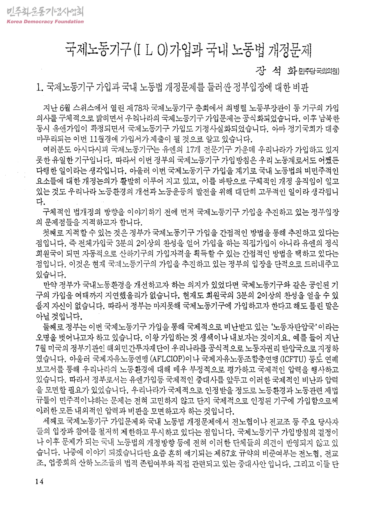 국제노동기구(ILO)가입과 국내 노동법 개정문제 관련 논문
