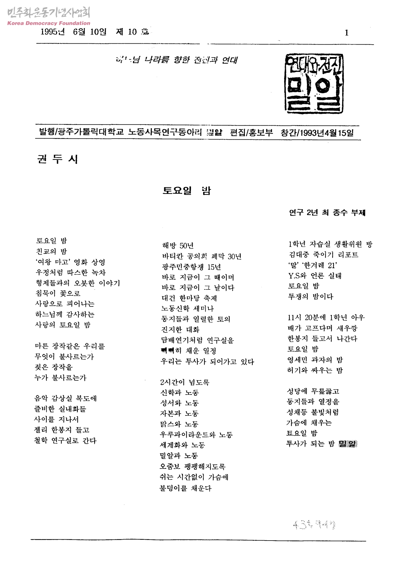 - 광주가톨릭대학교노동사목연구동아리밀알