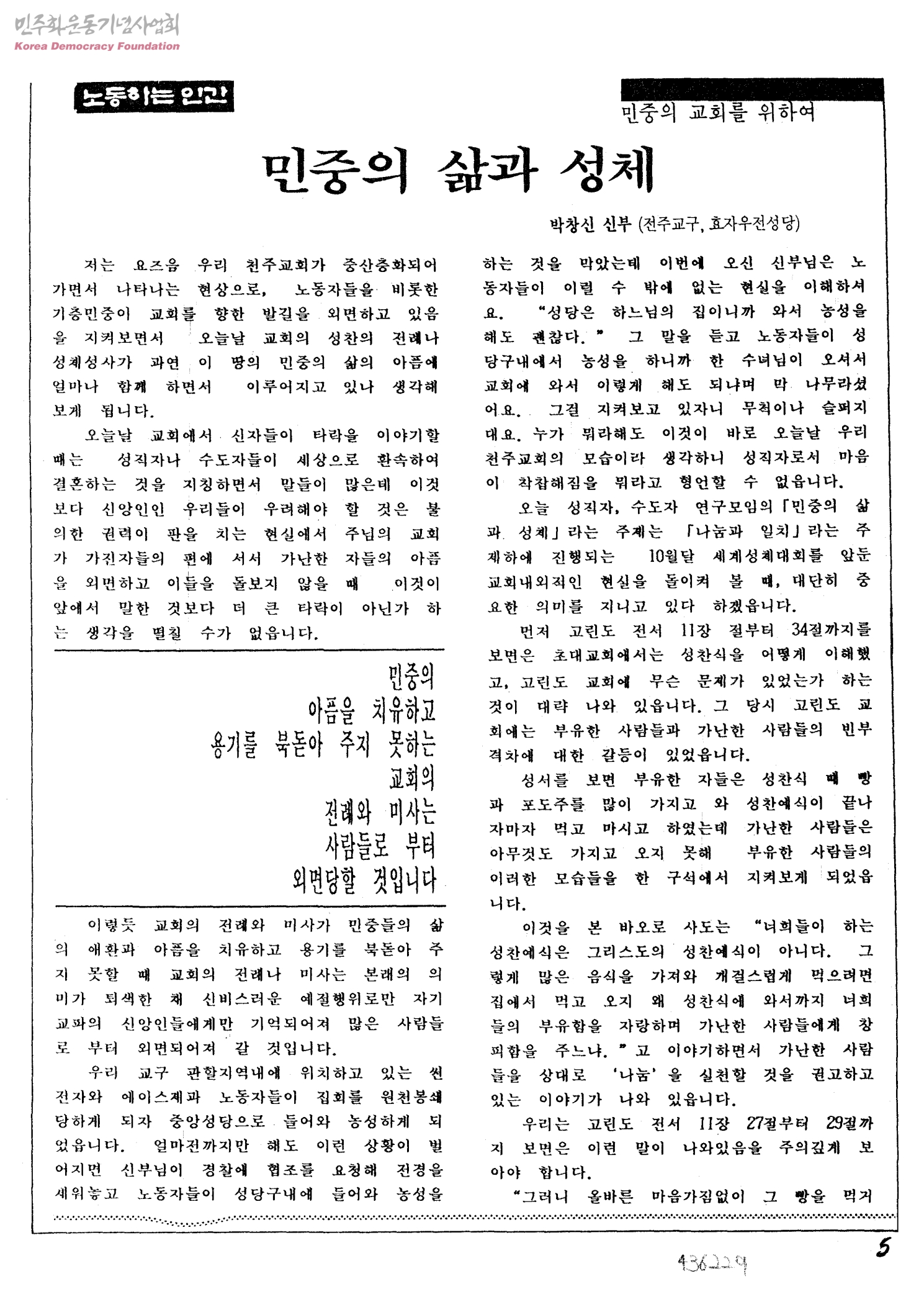 <노동하는 인간> 민중의 교회를 위하여 민중의 삶과 성체