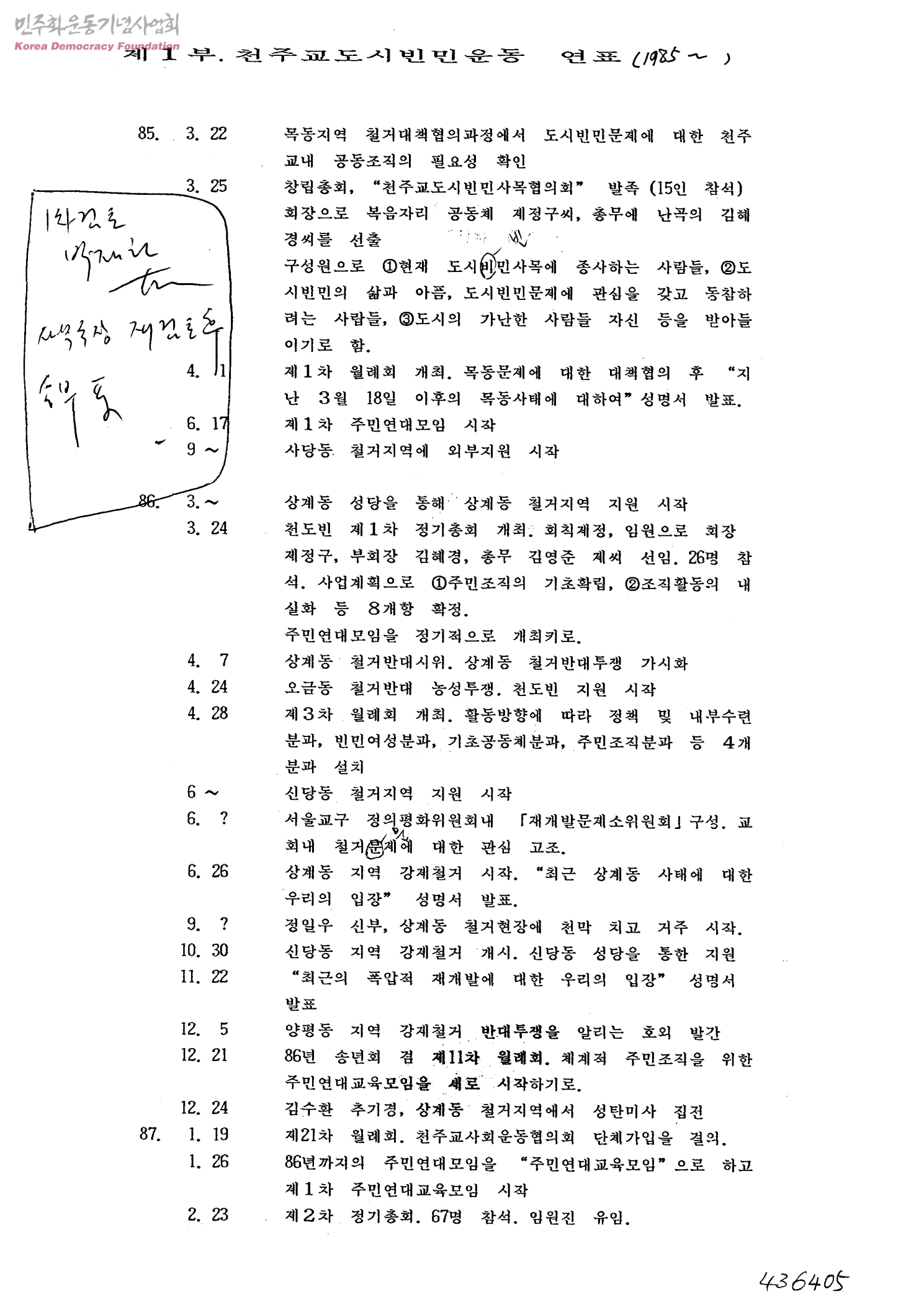 제 1부. 천주교도시빈민운동 연표(1985~ )