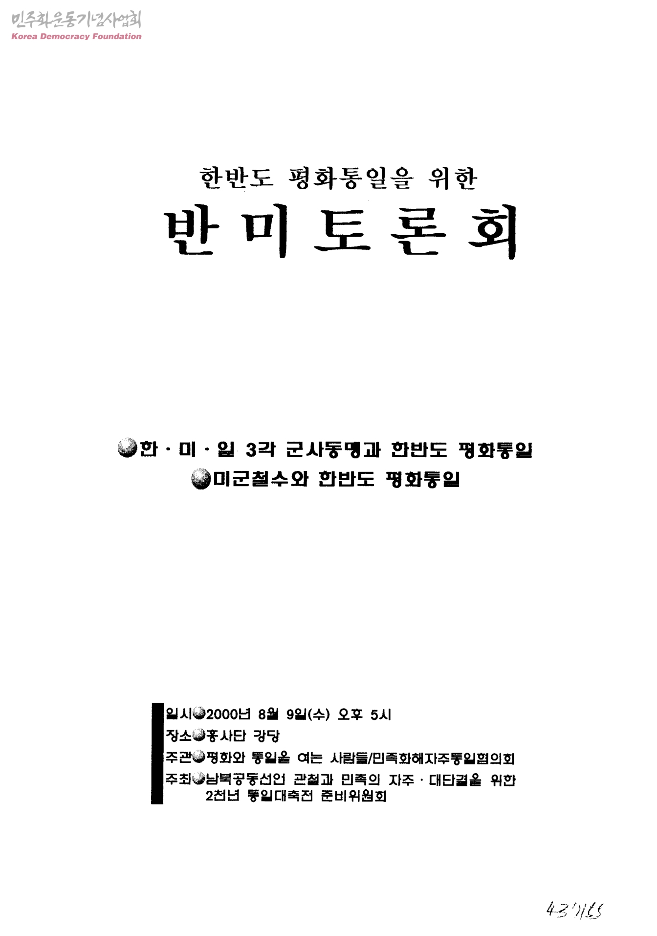 한반도 평화통일을 위한 반미토론회[한·미·일 3각 군사동맹과 한반도 평화통일, 미군철수와 한반도 평화통일]