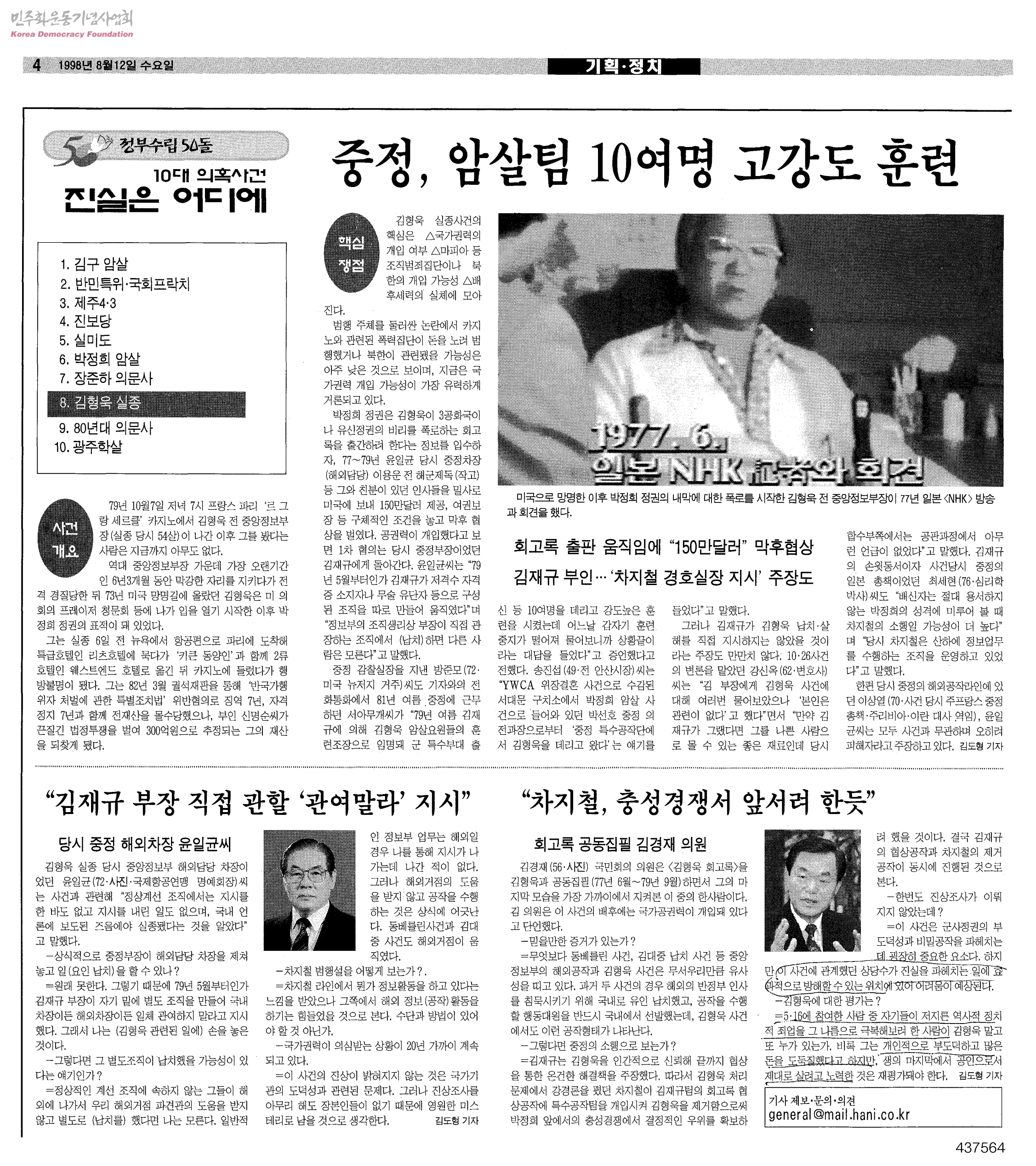 [신문스크랩] 정부수립 50돌 10대 의혹사건 진실은 어디에 8. 김형욱 실종