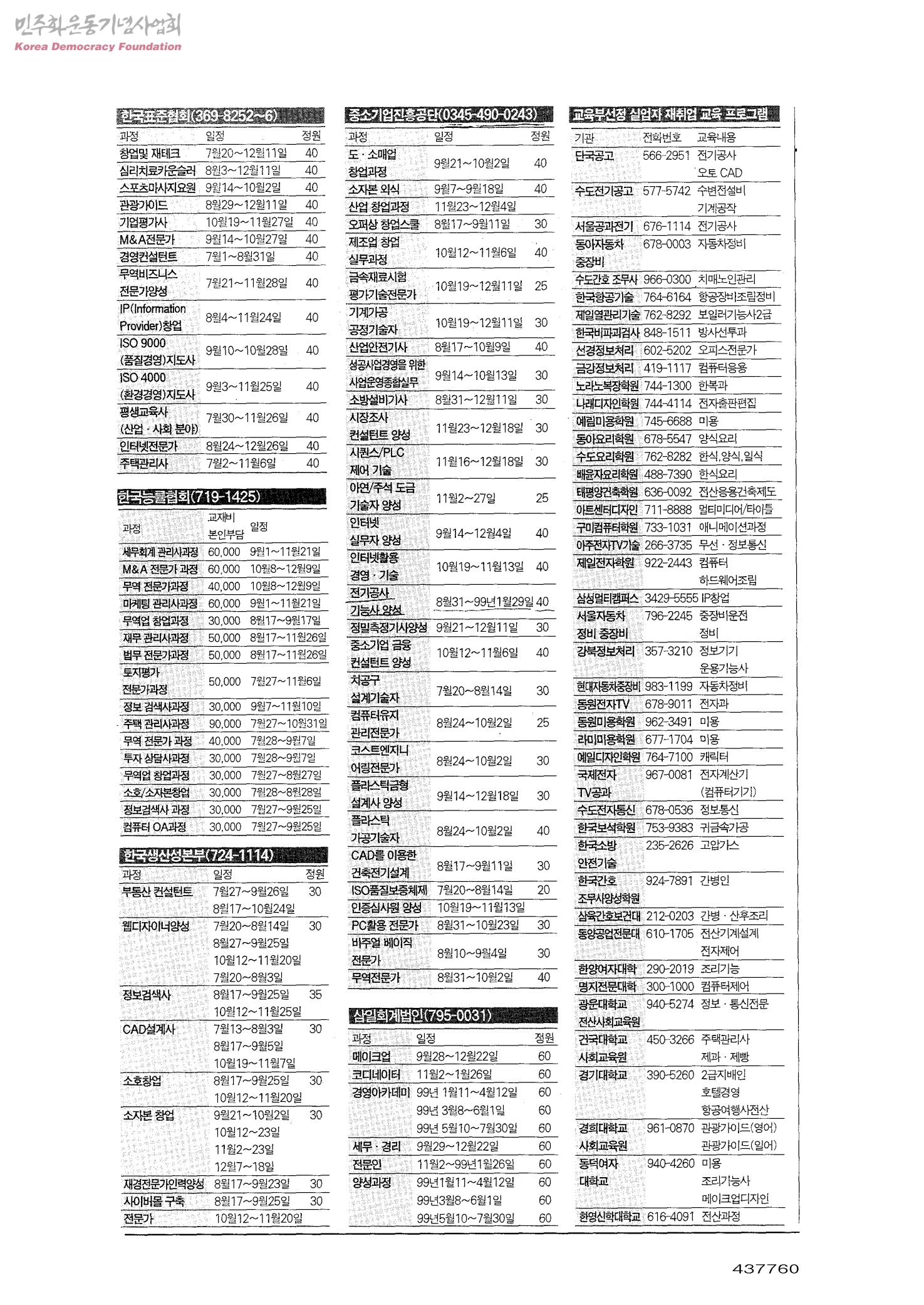 [신문스크랩] 한국표준협회, 한국능률협회, 한국생산성본부, 중소기업진흥공단, 삼일회계법인, 교육부선정 실업자 재취업 교육 프로그램