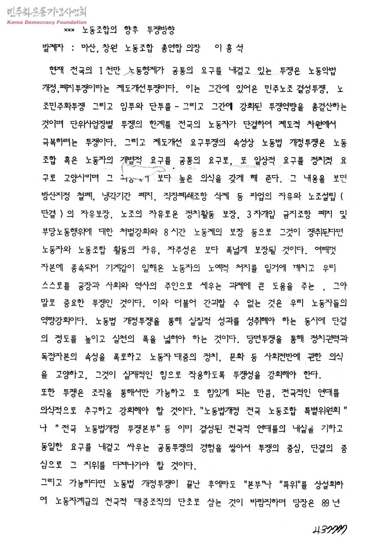 노동조합의 향후 투쟁방향[민주노조 결성투쟁, 노조민주화투쟁, 임투, 단투등과 노동법 개정투쟁에 관한 자료]