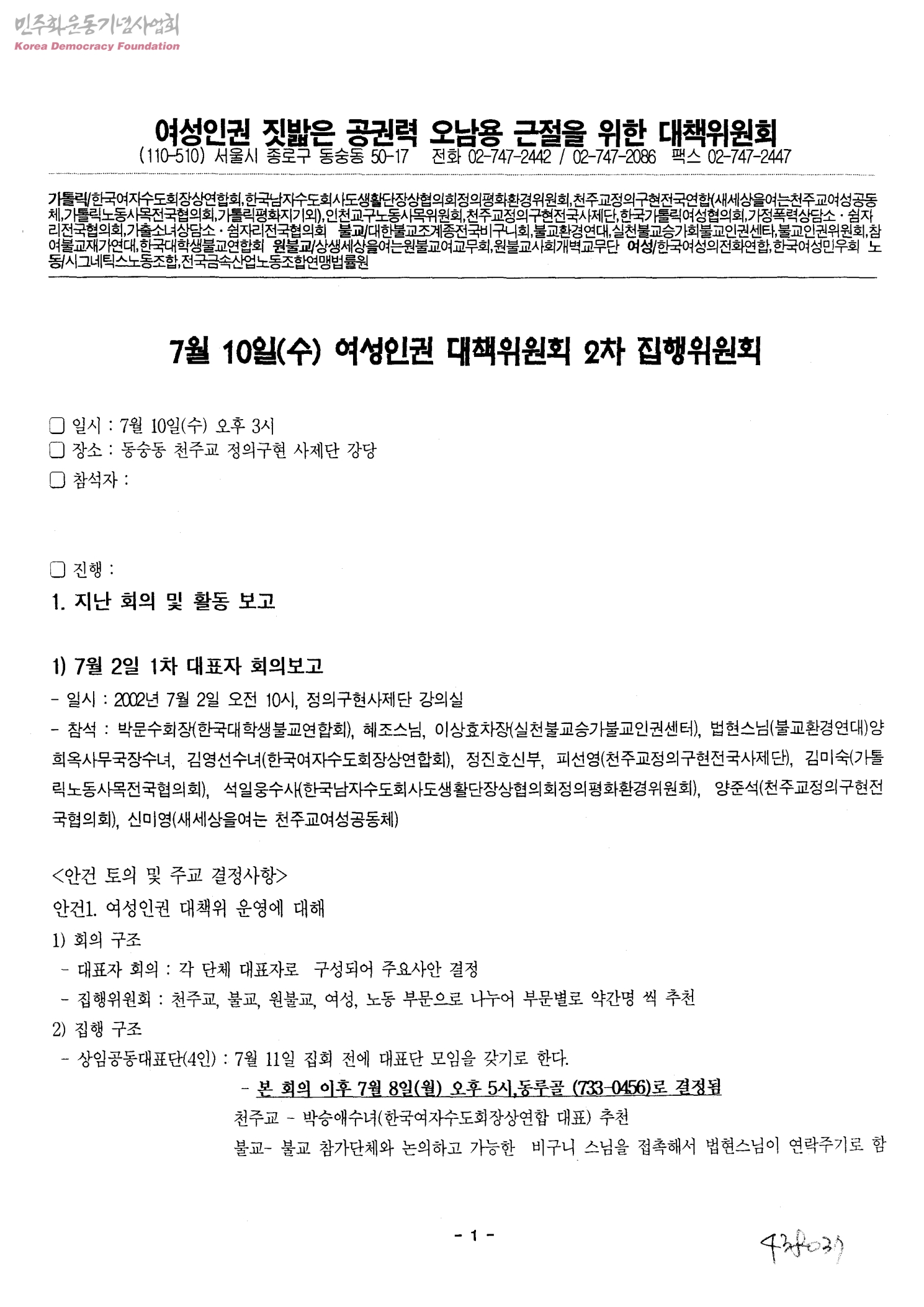 여성인권 대책위원회 2차 집행위원회