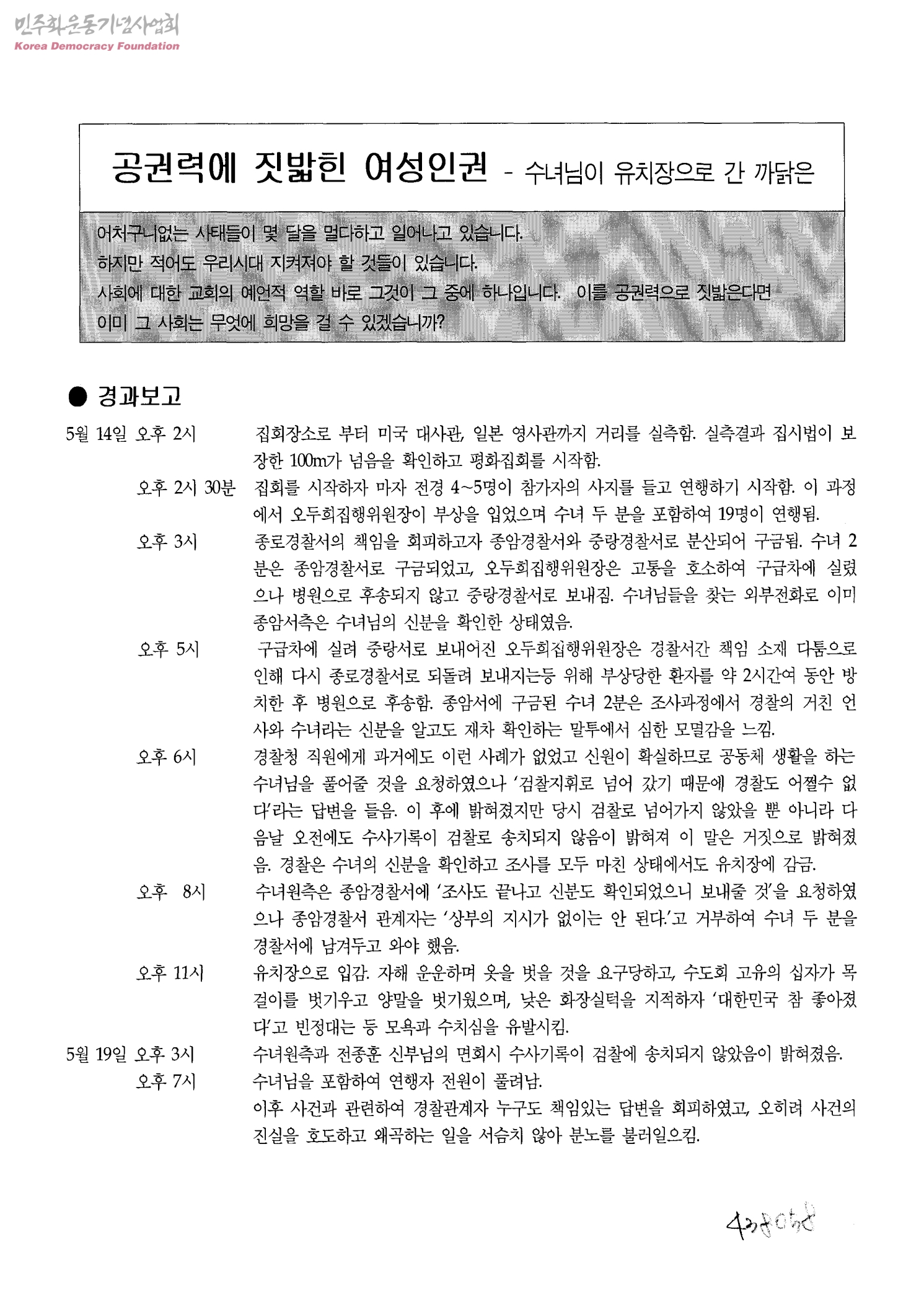 공권력에 짓밟힌 여성인권 - 수녀님이 유치장으로 간 까닭은