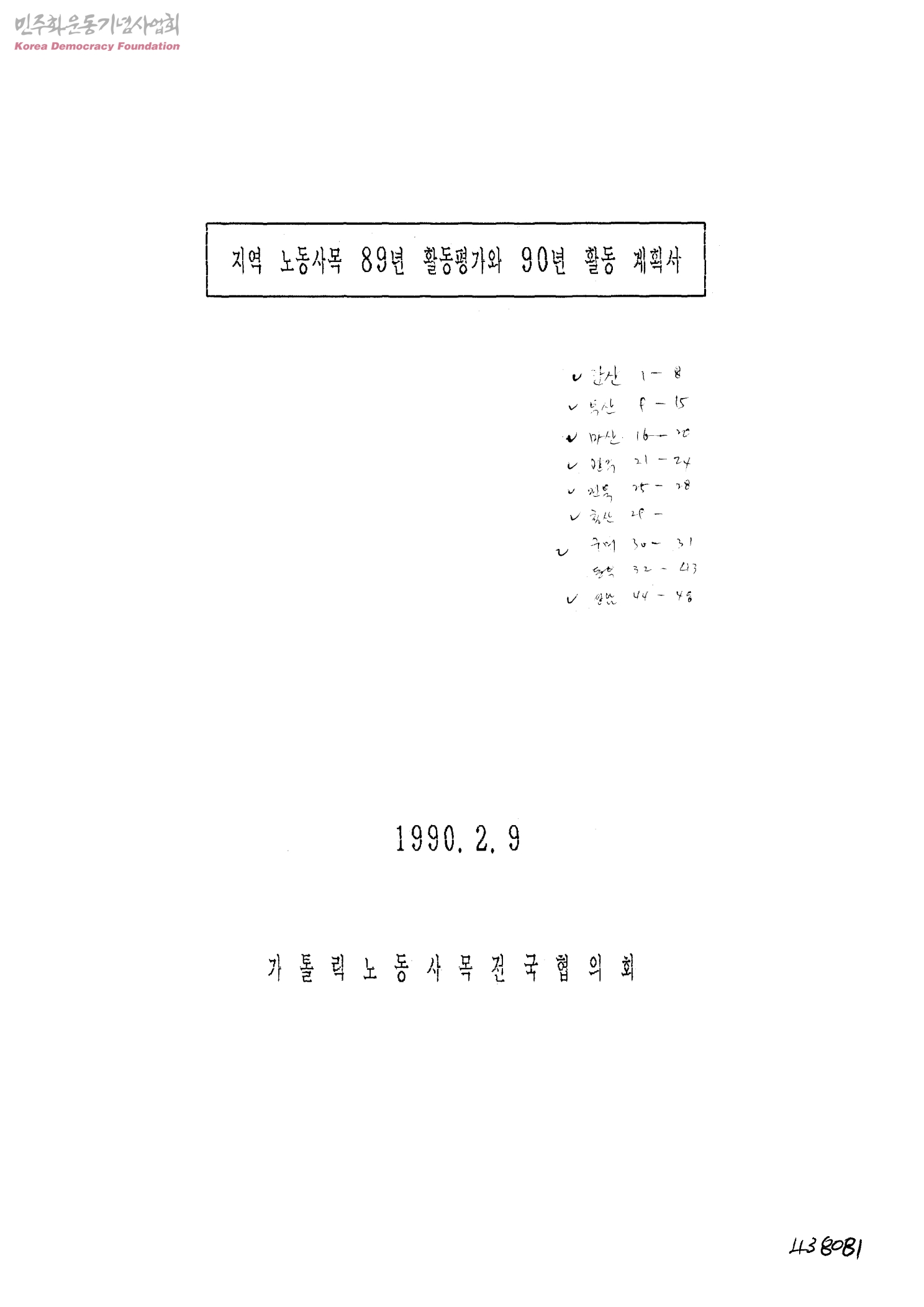 지역 노동사목 89년 활동평가와 90년 활동 계획서