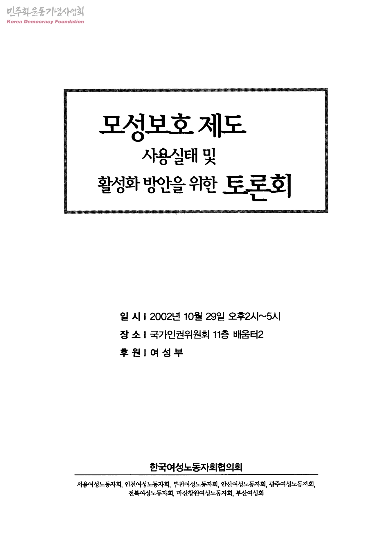 모성보호 제도 사용실태 및 활성화 방안을 위한 토론회