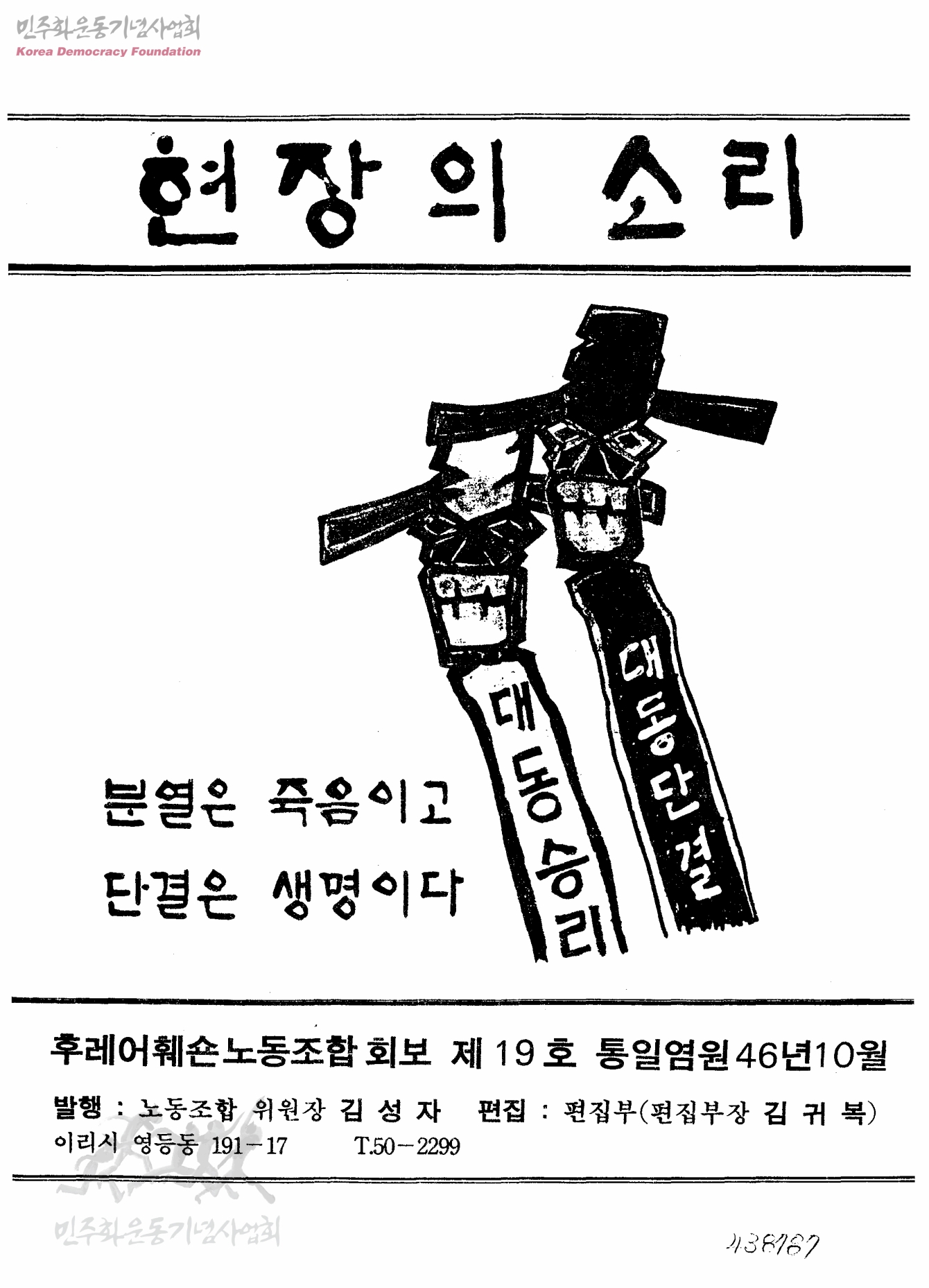 현장의 소리 후레어훼숀노동조합회보 제19호 통일염원46년10월