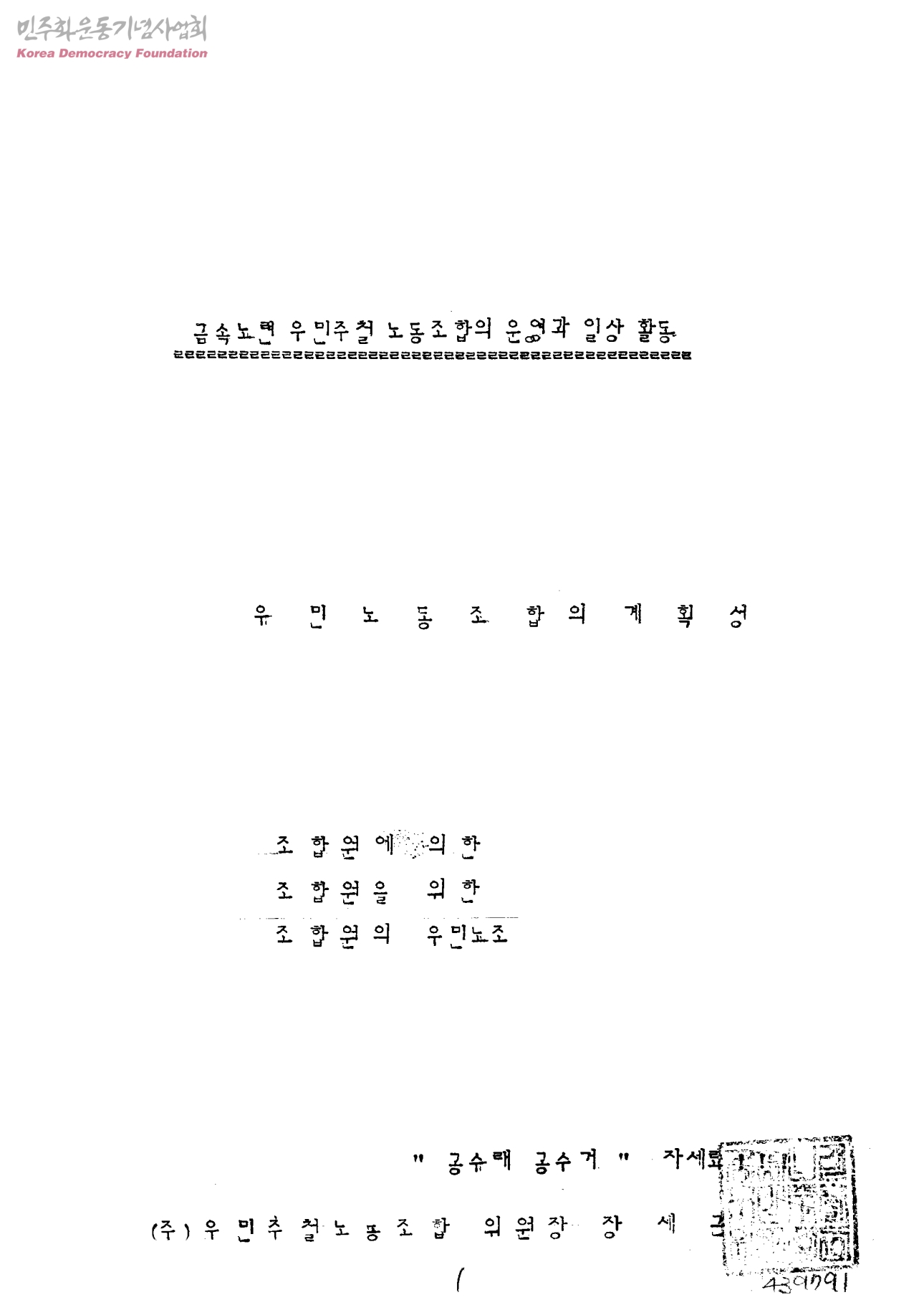 금속노련 우민주철 노동조합의 운영과 일상 활동