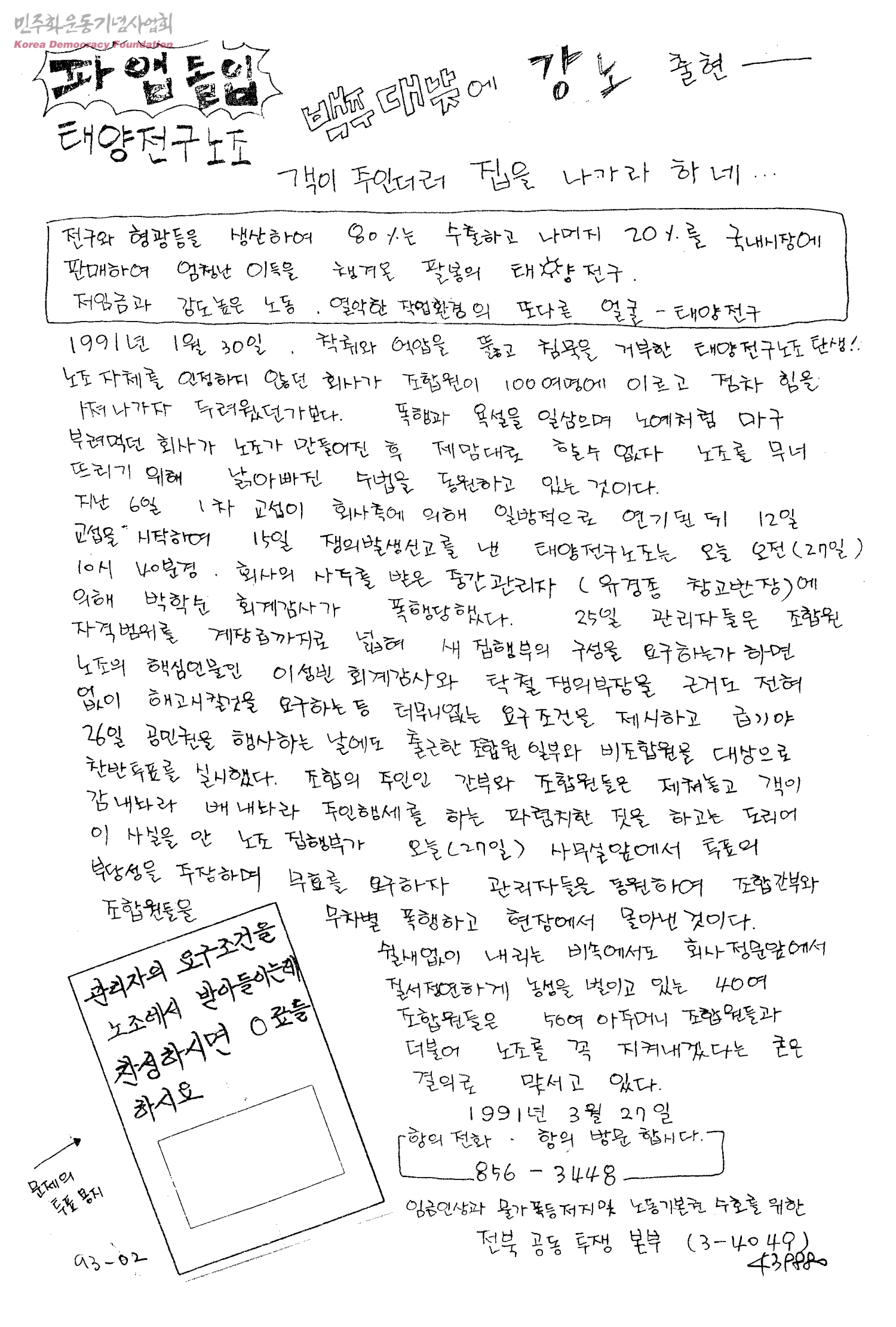 태양전구노조 파업돌입