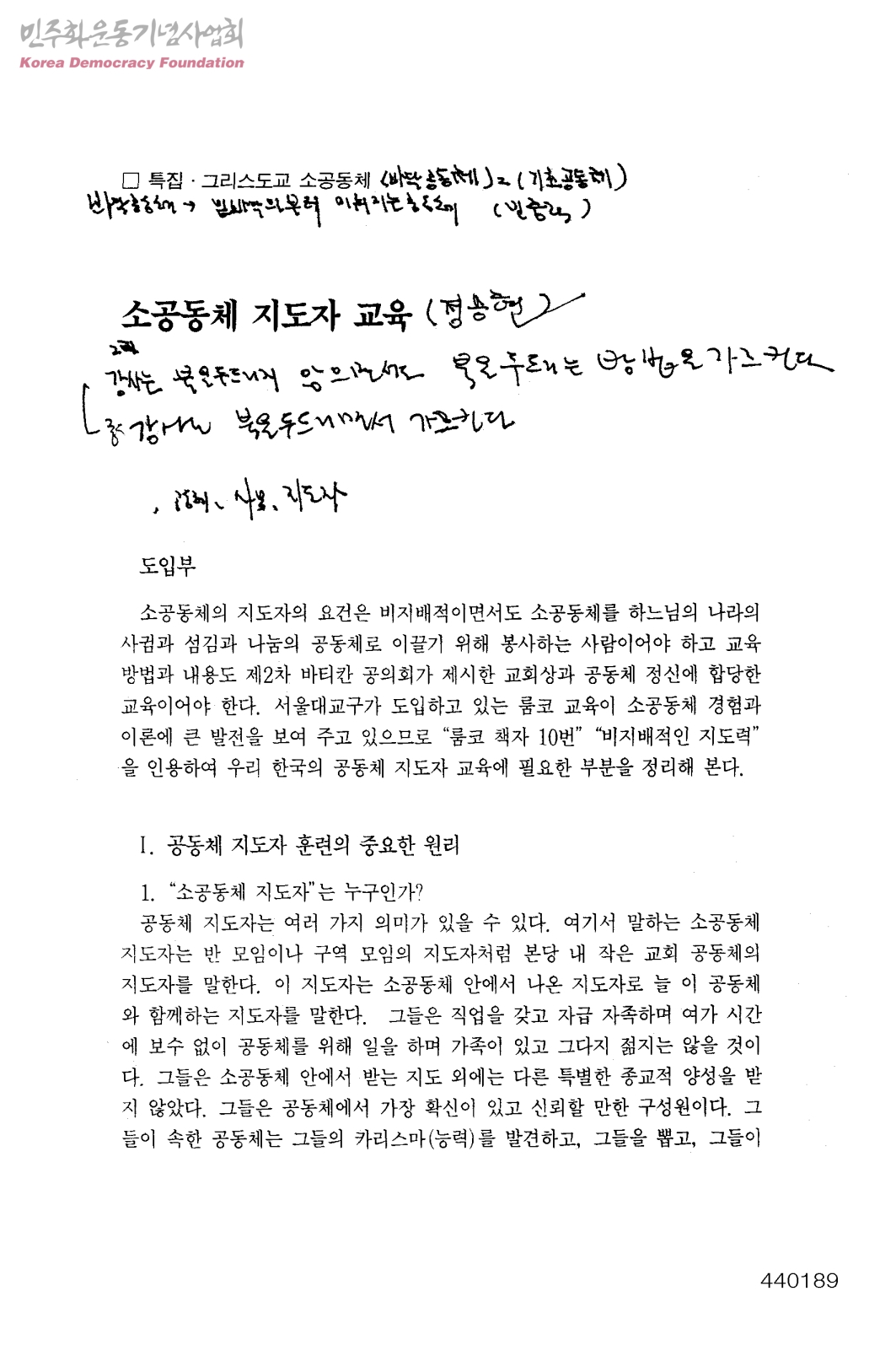특집·그리스도교 소공동체 소공동체 지도자 교육