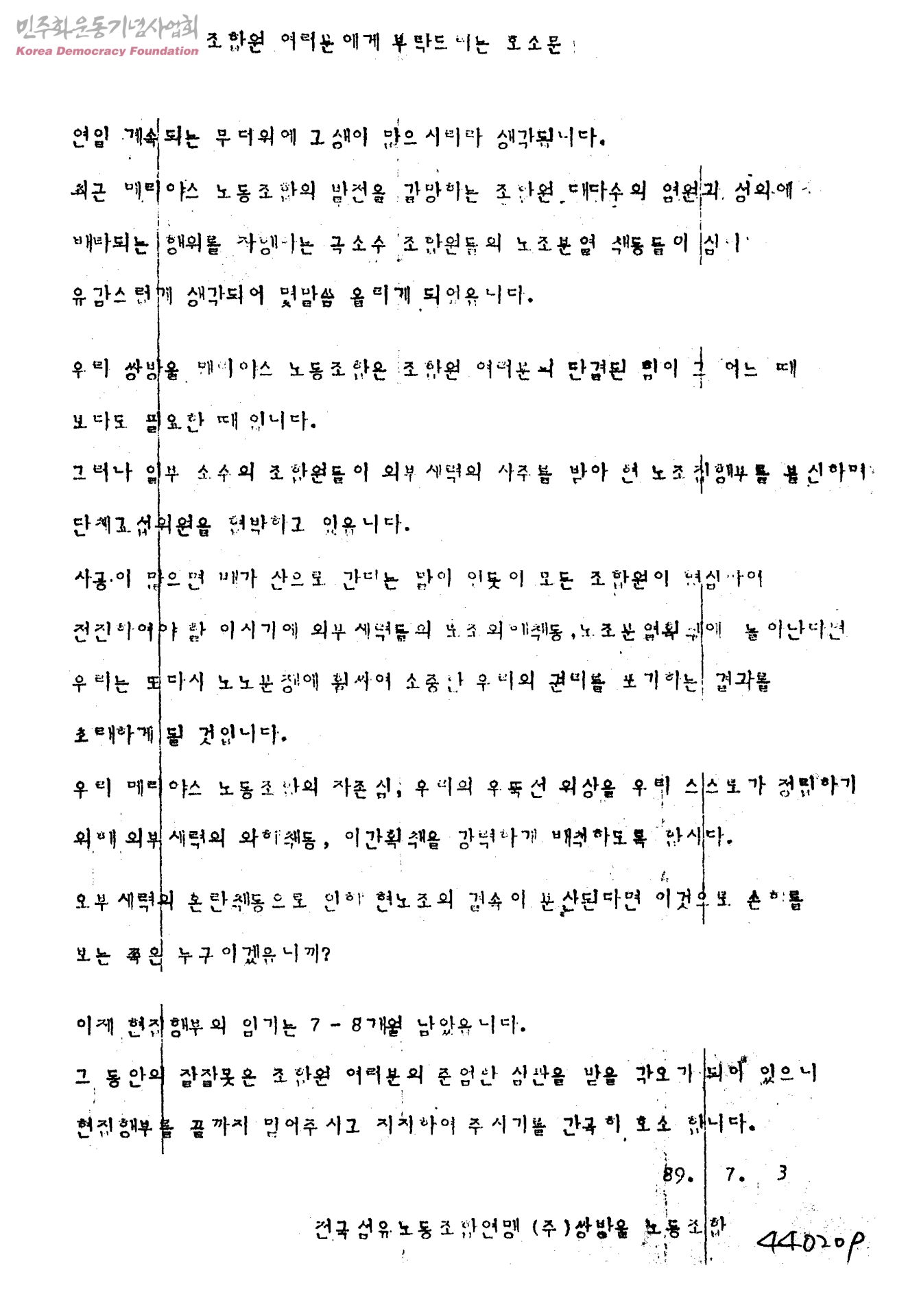 - 생산자 및 기증자가 ‘경향신문사’인 사진의 사용은 경향신문사 담당자(02-3701-1635)를 통해 구매하실 수 있습니다. 그 외의 생산자 및 기증자는 민주화운동기념사업회 사료관 담당자( hyunchaek@kdemo.or.kr / 02-6440-8961 )에게 문의바랍니다.