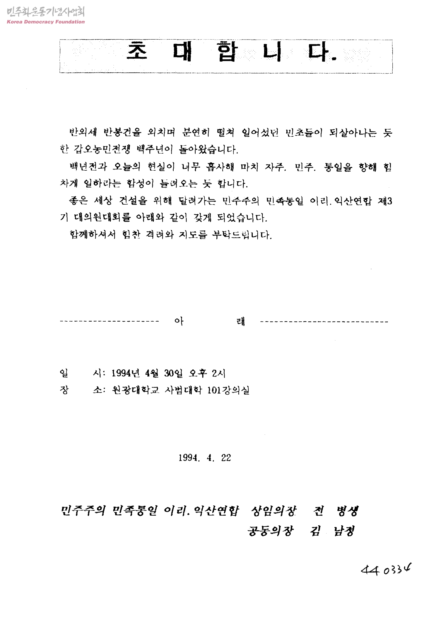 [민주주의 민족통일 이리.익산연합 제3기 대의원대회 안내]