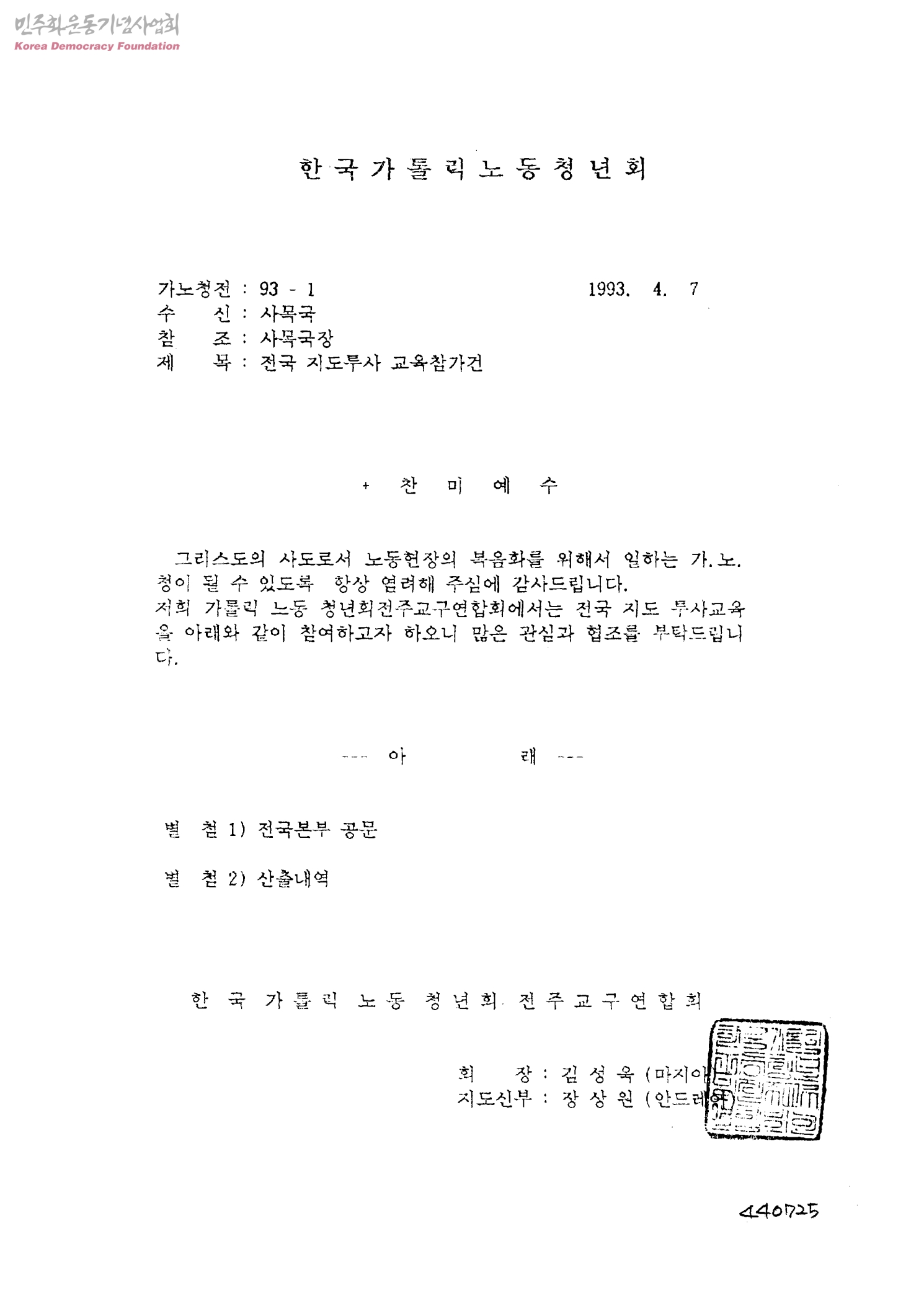 전국 지도투사 교육참가건 [수신: 사목국 사목국장]