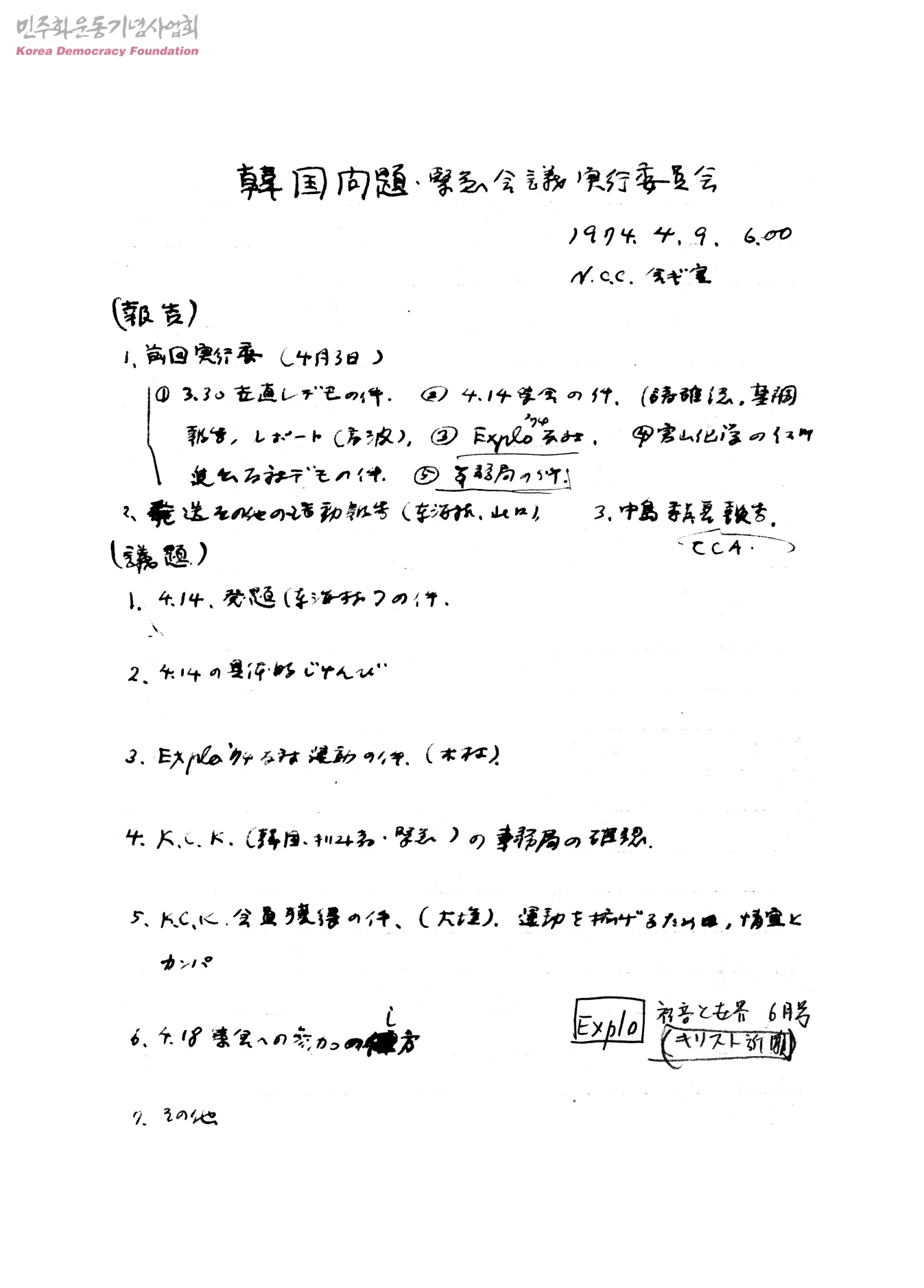 韓國問題キリスト者緊急會議 實行委員會[회의록]