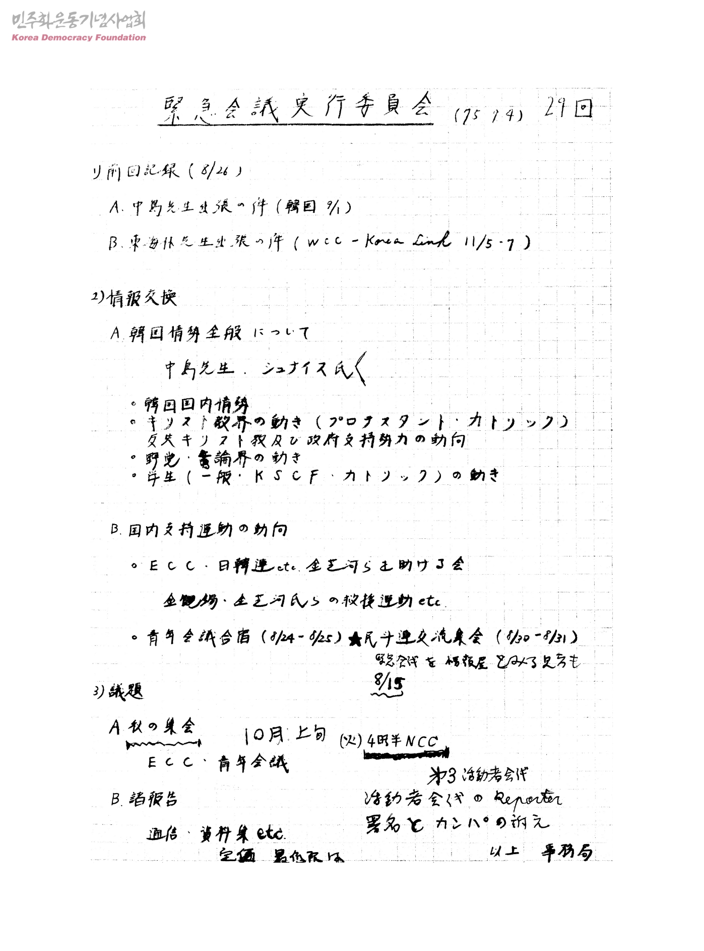 - 韓國問題キリスト者緊急會議 實行委員會