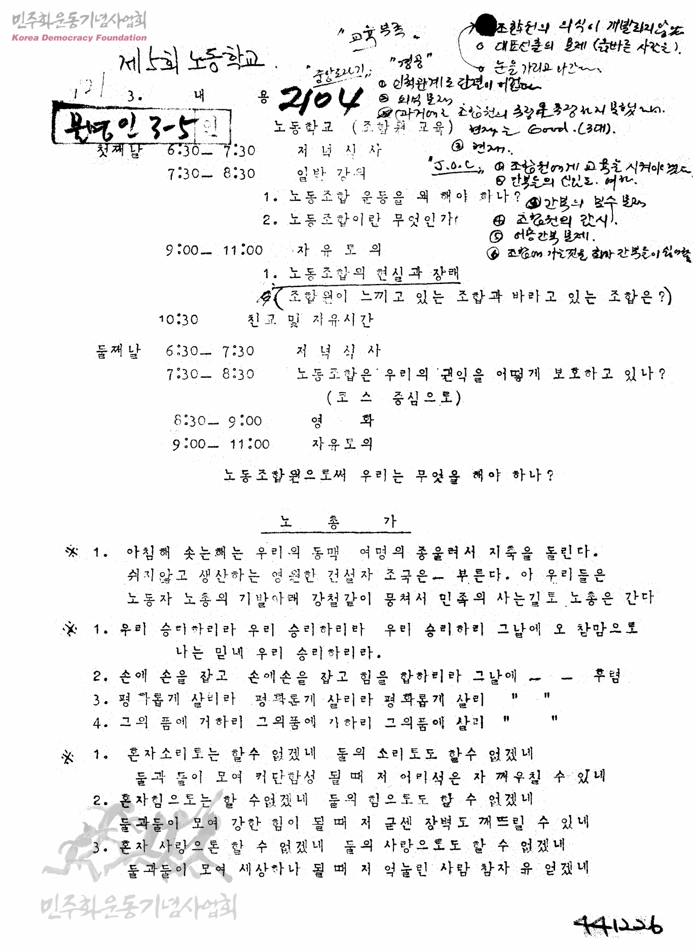 제5회 노동학교[노동학교 관련 안내서 및 노래집]