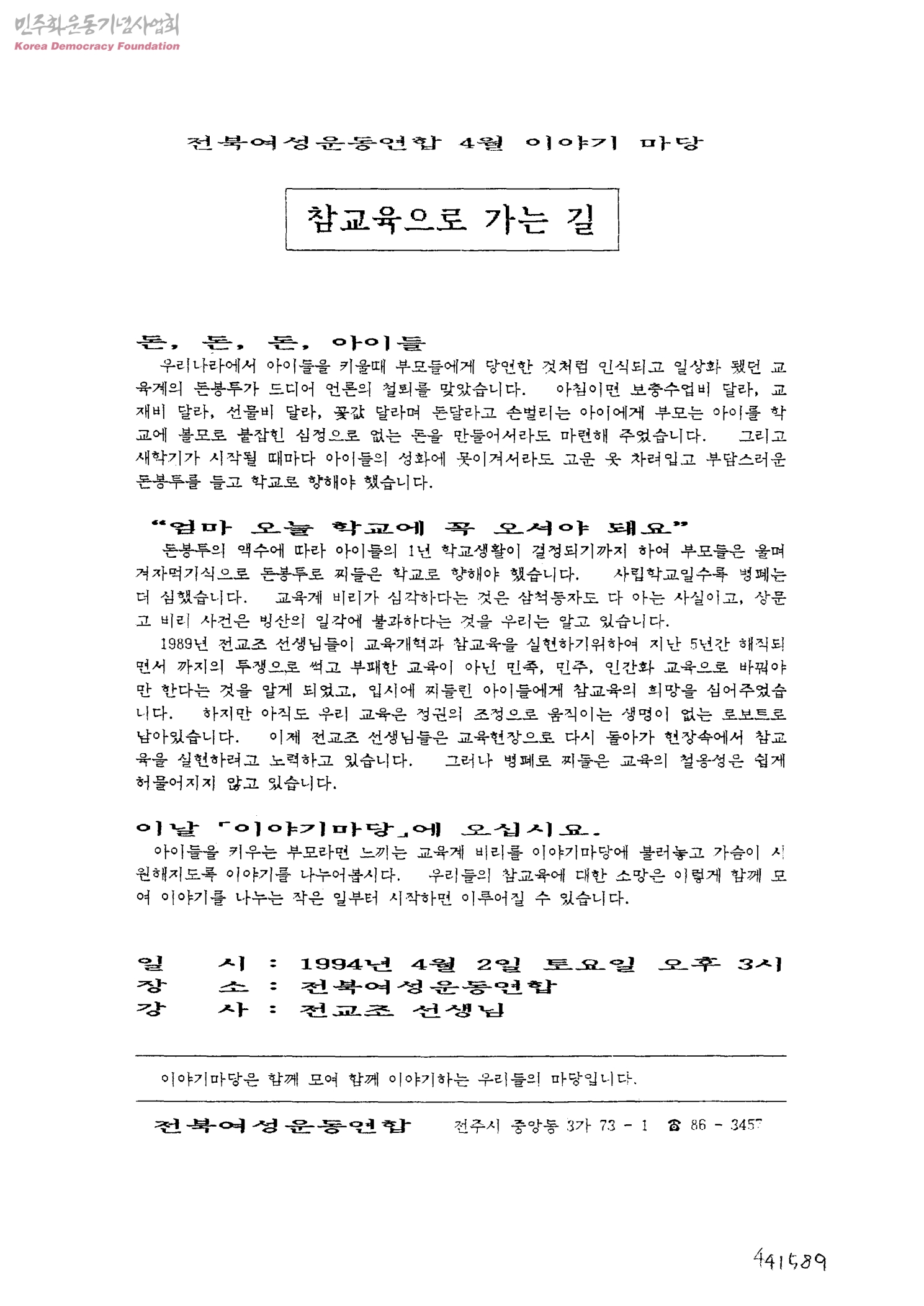 전북여성운동연합 4월 이야기 마당 - 참교육으로 가는 길