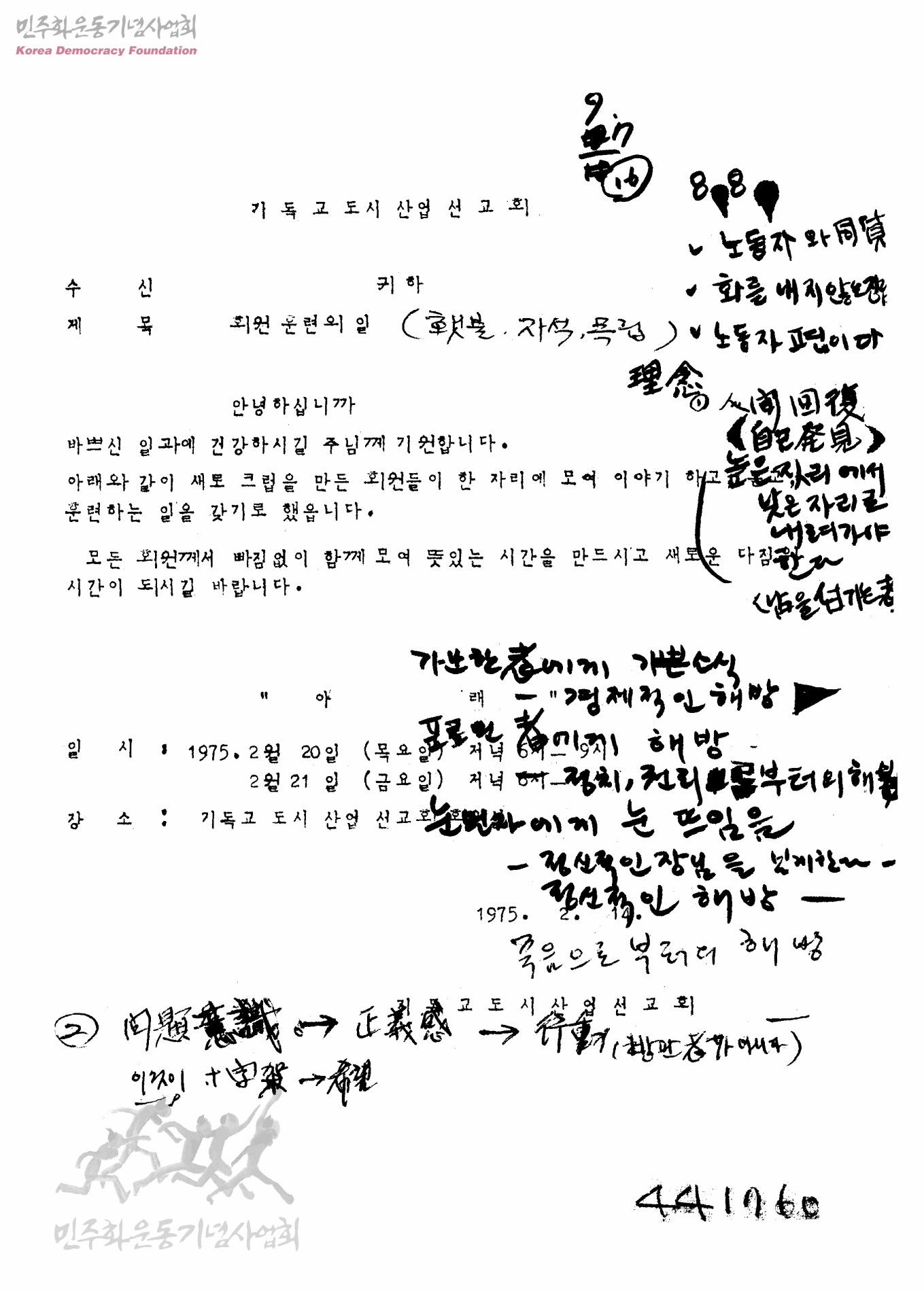 회원훈련의 일[발신:기독교도시산업선교회]