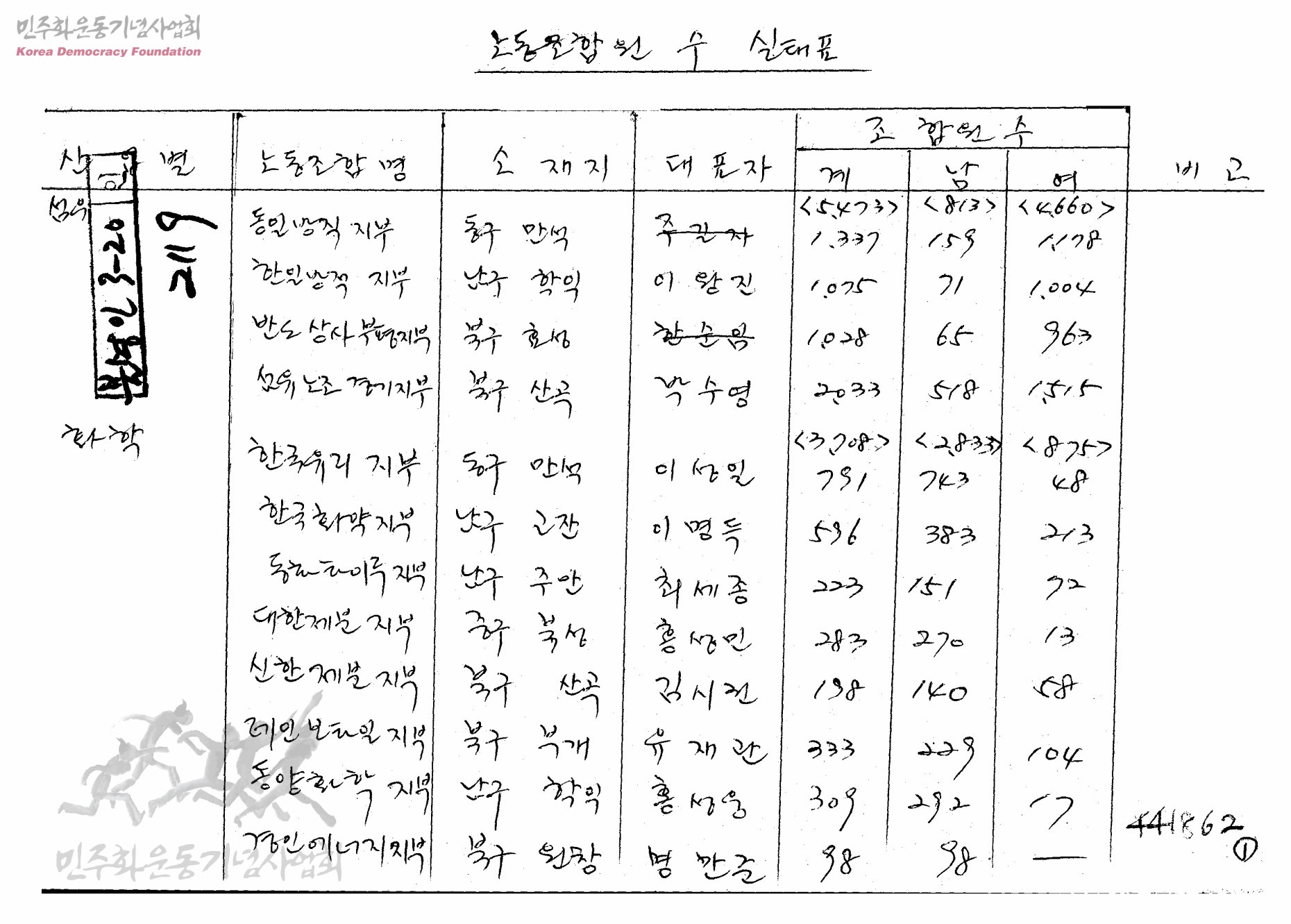 노동조합원 수 실태표