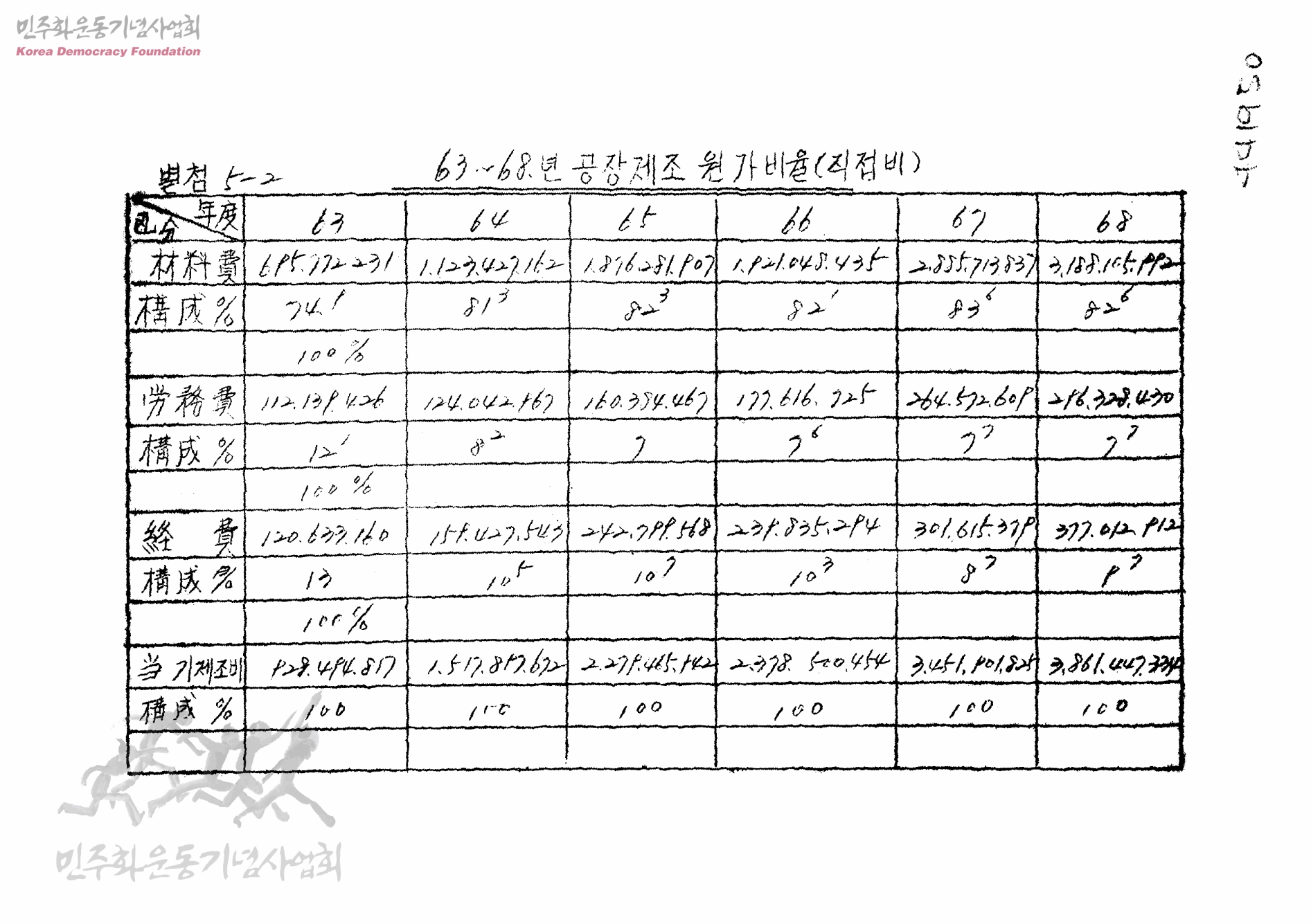 63~68년 공장제조원가비율(직접비)
