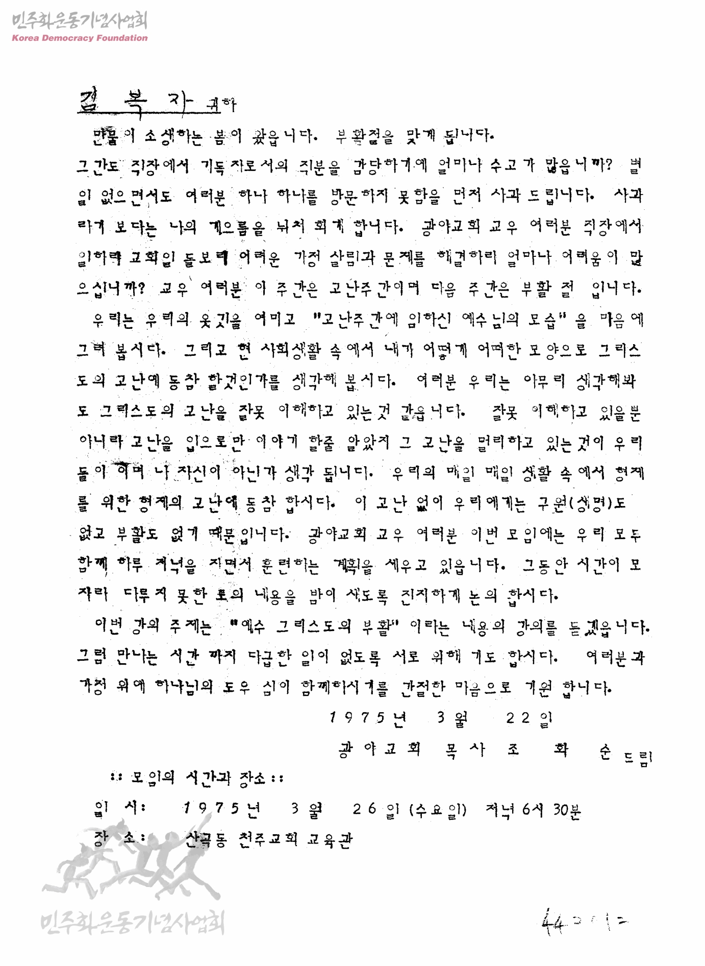 [김복자씨에게 보내는 강의 안내-주제: "예수그리스도의 부활"]