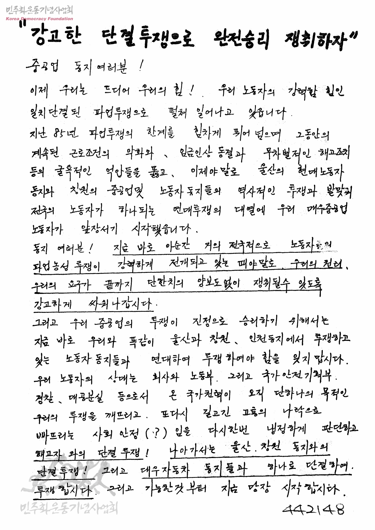 강고한 단결투쟁으로 완전승리 쟁취하자[중공업 투쟁 촉구문]