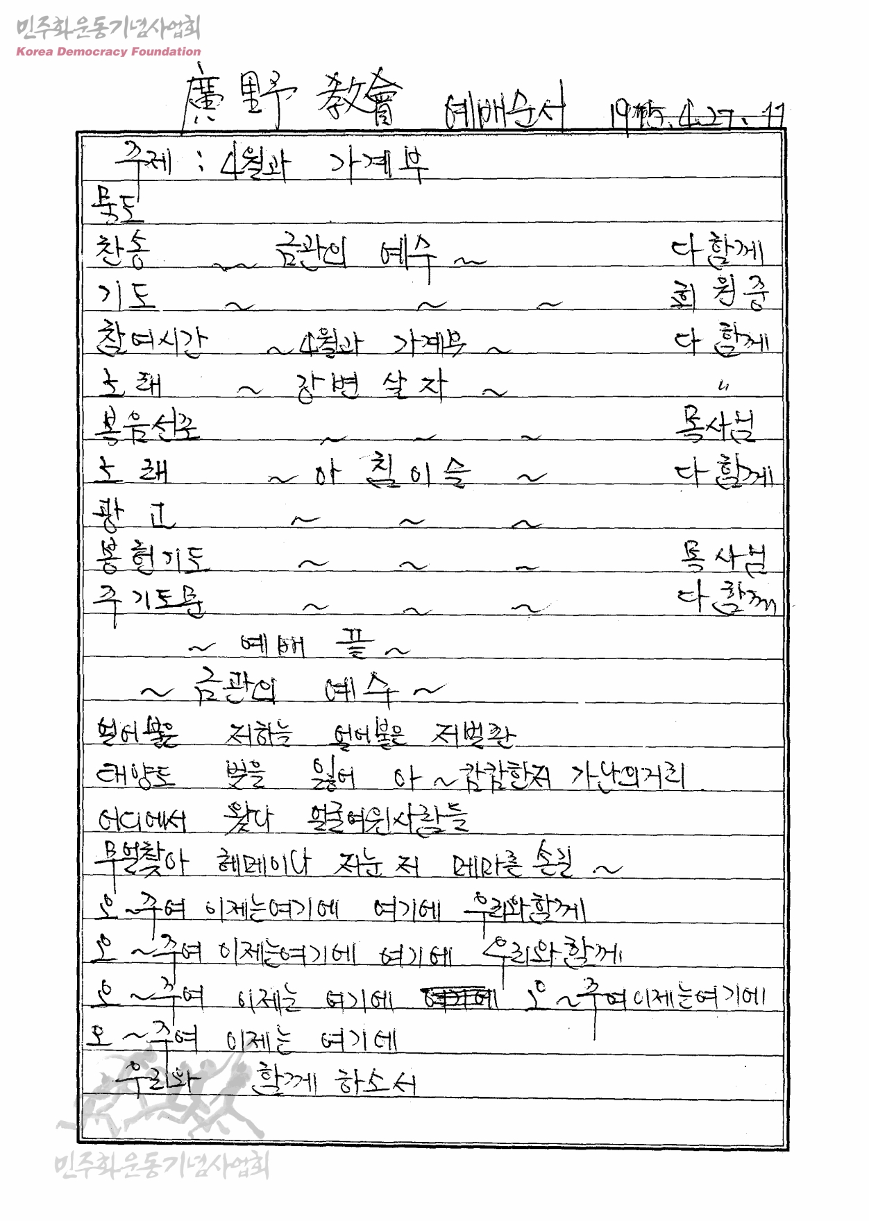 廣野 敎會 예배순서-4월과 가계부