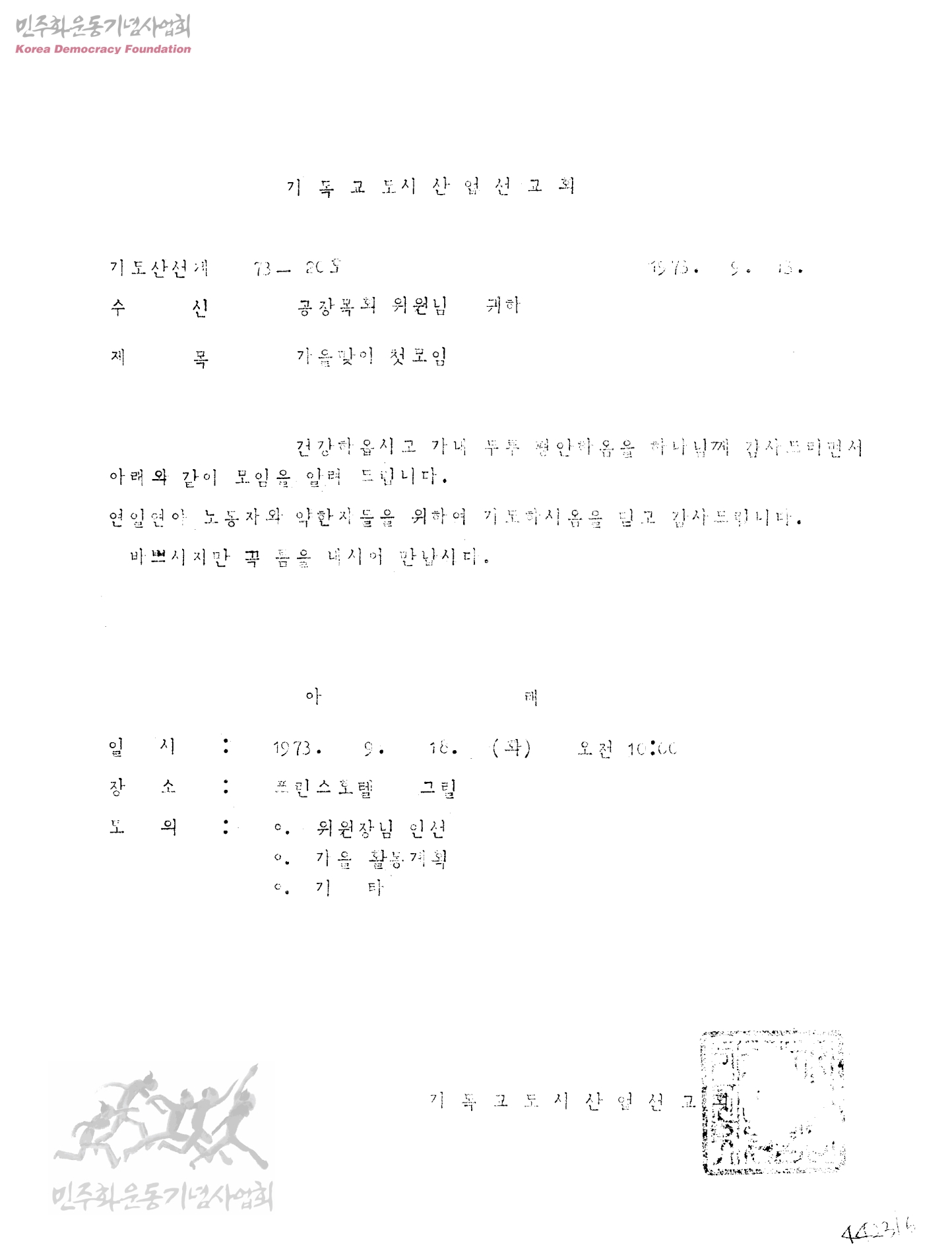가을맞이 첫모임 [수신:공장목회 위원님]