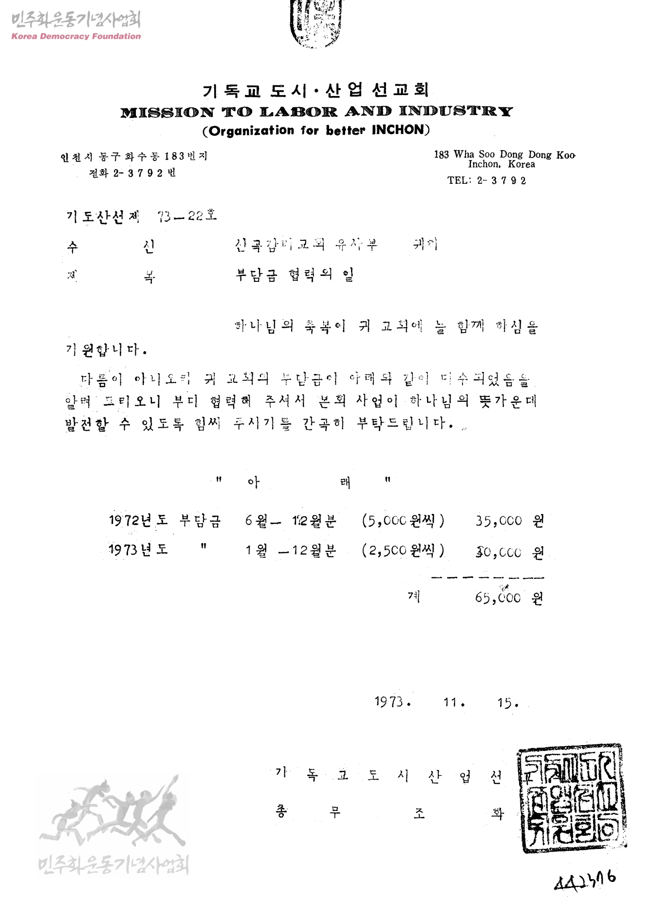 부담금 협력의 일 [수신: 산곡감리교회유사부]