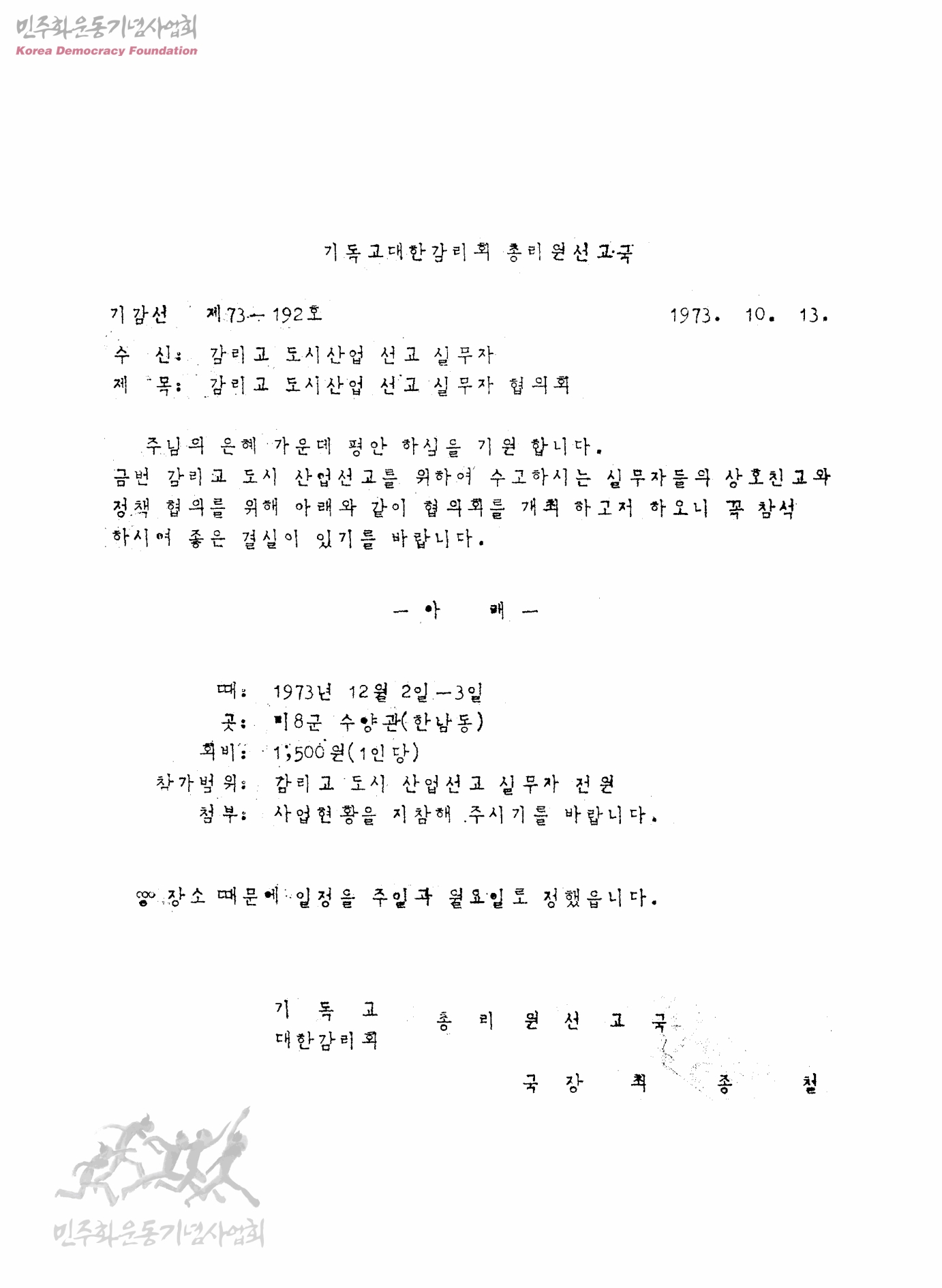감리교 도시산업 선교 실무자 협의회 [수신: 감리교 도시산업 선교 실무자]
