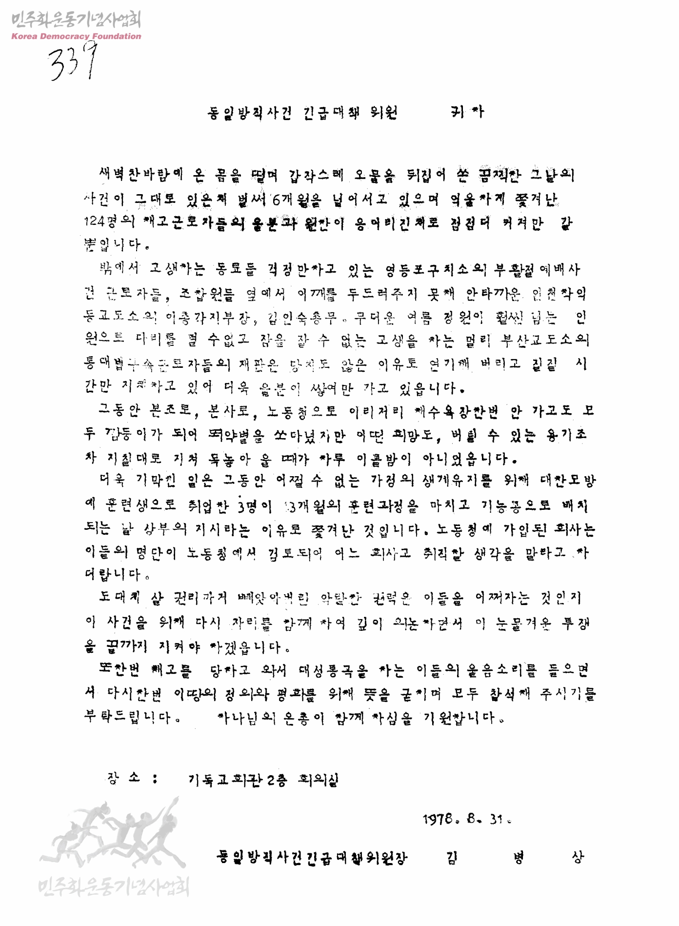 - 생산자 및 기증자가 ‘박용수’인 사진의 사용은 구매신청을 클릭하여 직접 사진 구매 신청을 하실 수 있습니다. 생산자 및 기증자가 ‘경향신문사’인 사진의 사용은 경향신문사 담당자(02-3701-1635)를 통해 구매하실 수 있습니다. 그 외의 생산자 및 기증자는 민주화운동기념사업회 사료관 담당자( hyunchaek@kdemo.or.kr / 02-6440-8961 )에 문의바랍니다.